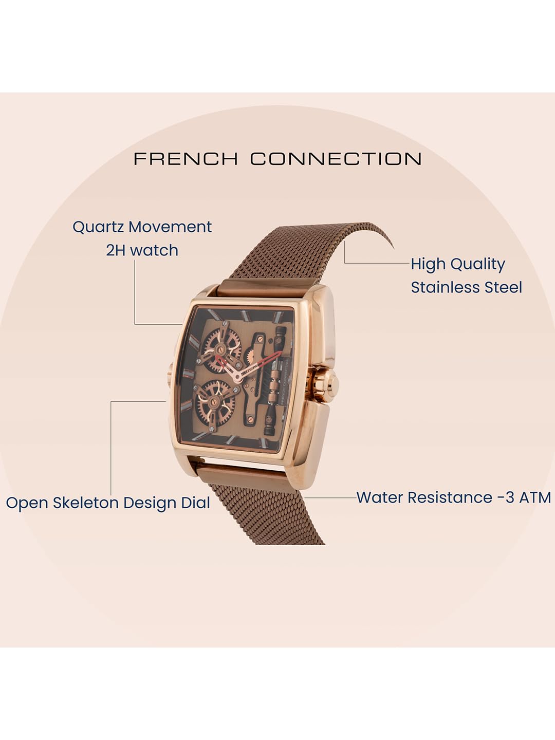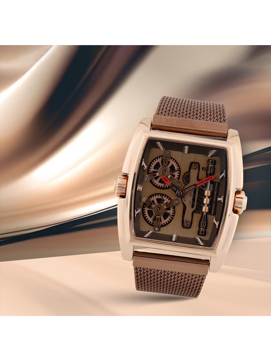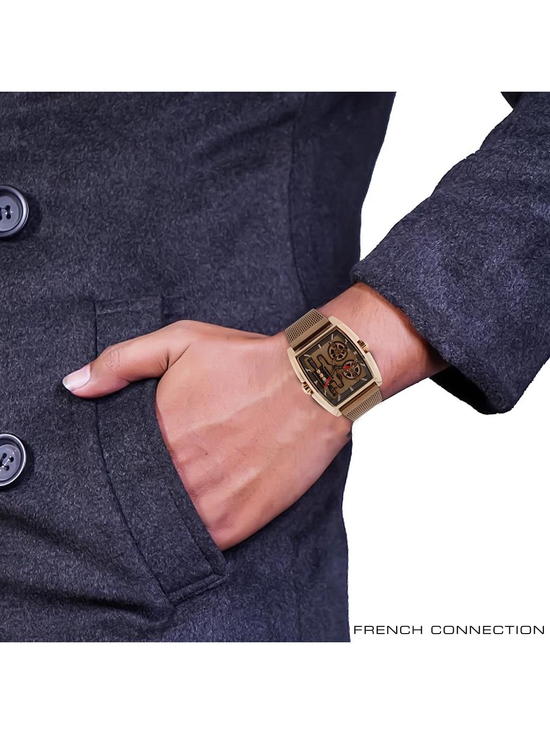 French Connection is renowned for its stylish and contemporary designs, offering high-quality products that combine functionality with fashion. The Quadra Rex collection embodies the brand’s commitment to innovative design and superior craftsmanship. This automatic watch is a testament to French Connection’s dedication to creating timepieces that are not only practical but also make a bold fashion statement. With features like 5 ATM water resistance, a robust mineral glass face, and a comfortable silicone strap, the Quadra Rex watch is perfect for the modern man who values both style and performance.