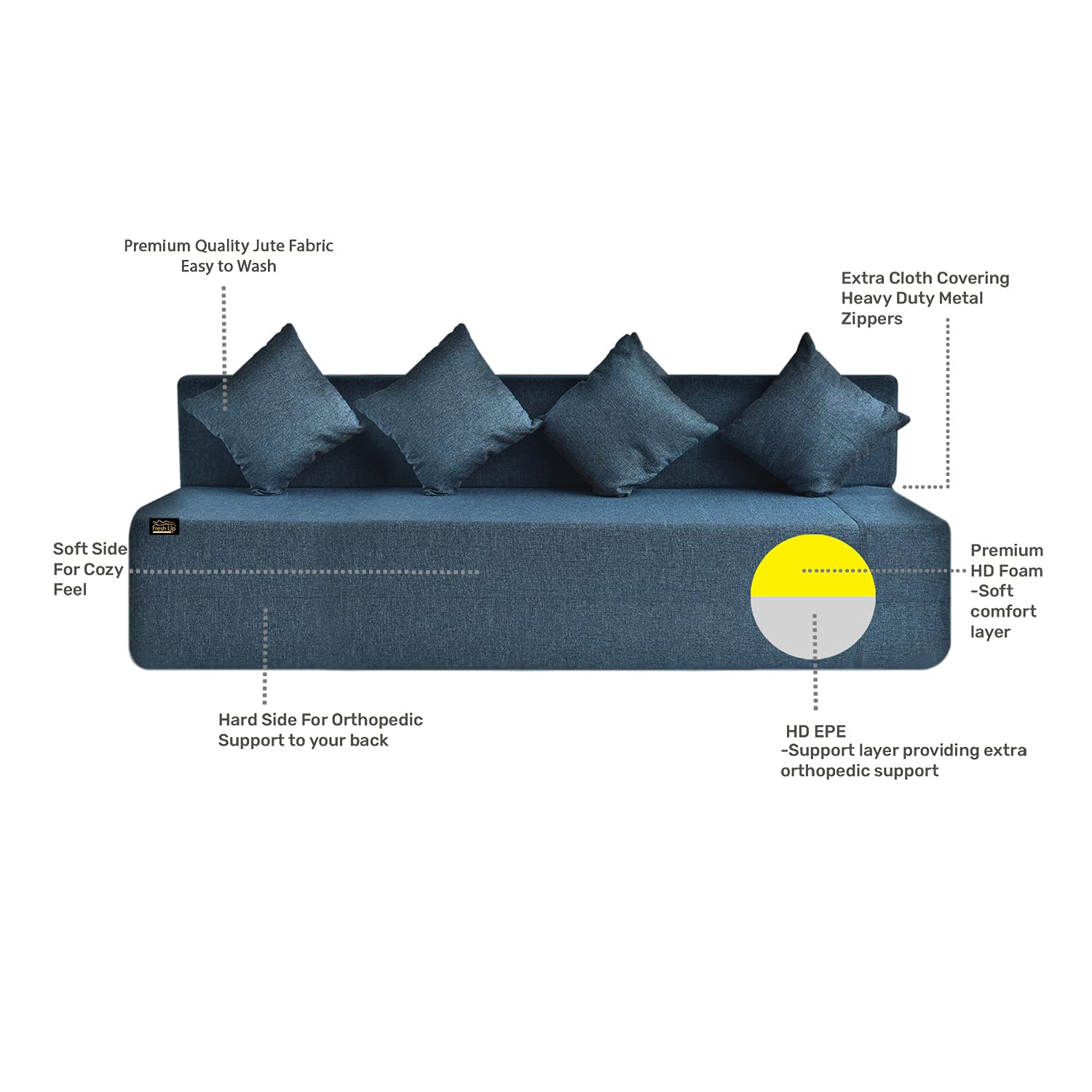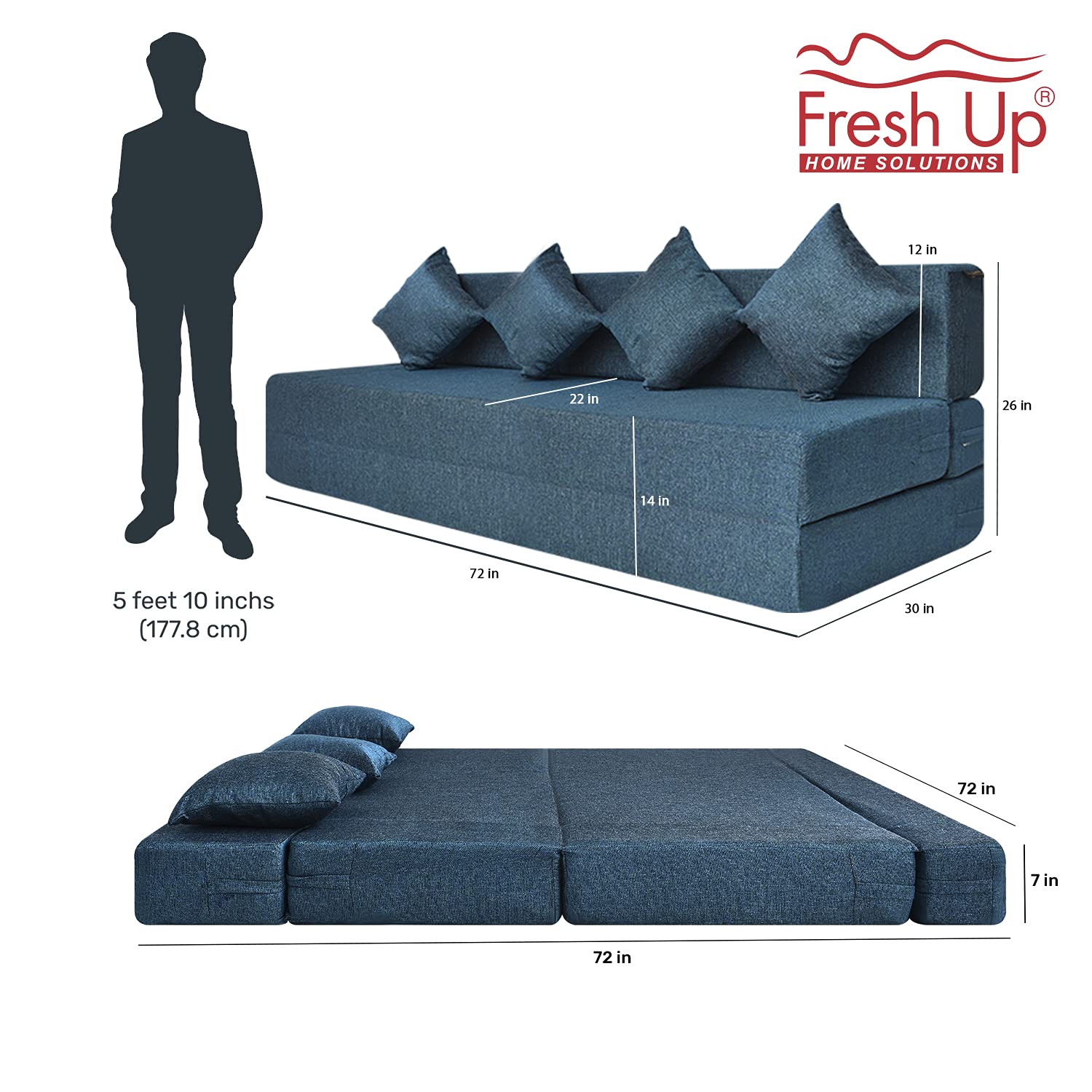 PACKAGE CONTENT: 1 sofa bed + 1 Cushion | ASSEMBLY: already assembled, just flatten it to use it as a mattress and flip it to convert into a sofa.