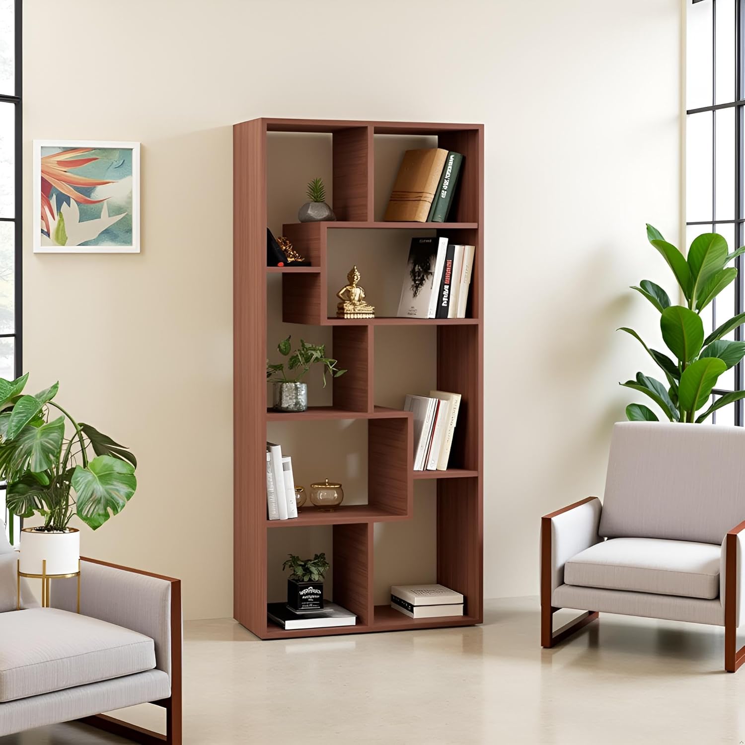 FURNEASER Medina Bookshelf for Books, Multipurpose Bookcase, Wooden Modern Book Display Rack, File Storage Cabinet for Home,Study Room & Office (Exotic Teak)