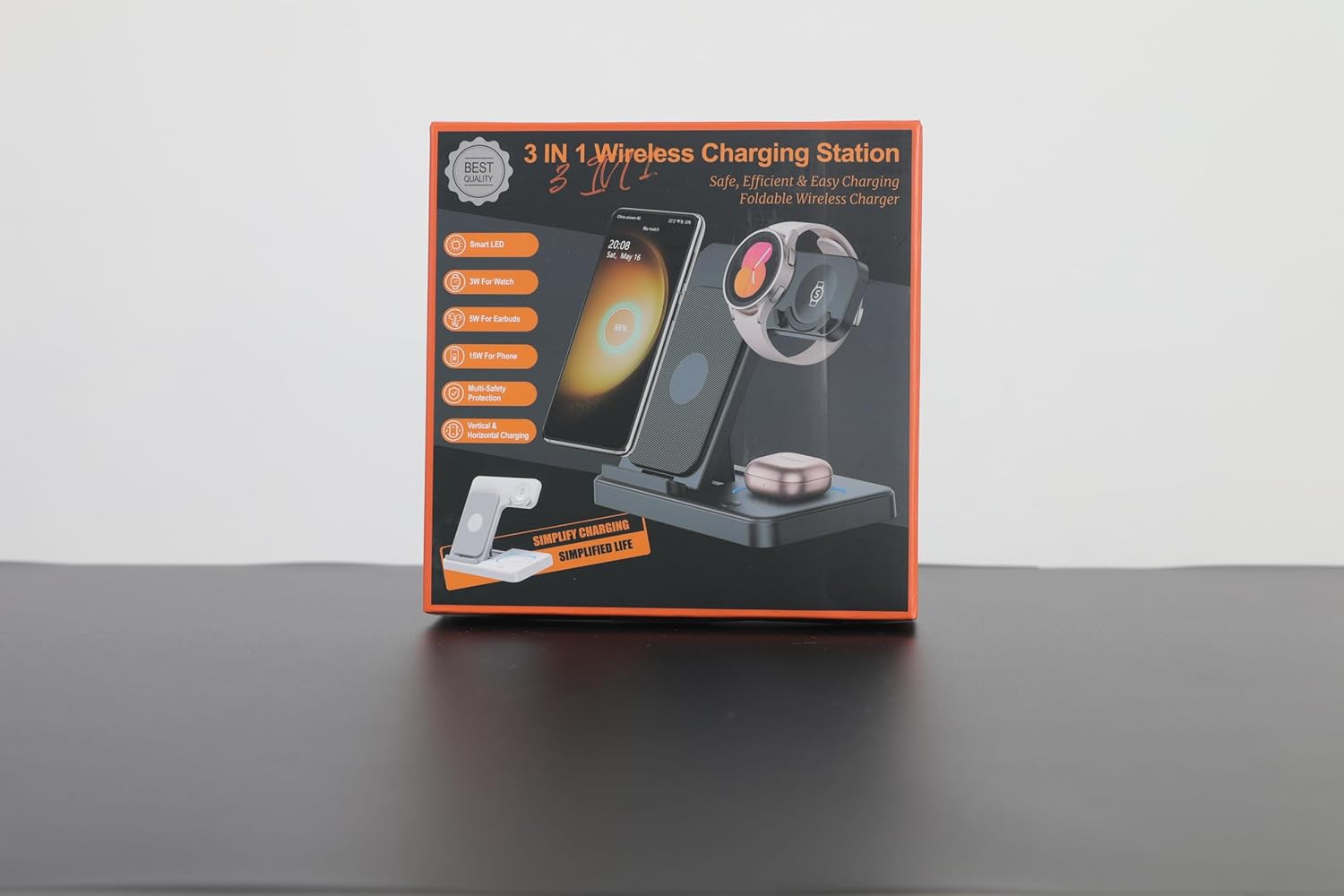 GEEKERA Wireless Charger for Samsung, 3 in 1 Docking Station for Samsung S24/S23/S22/S21/Z Flip/Fold