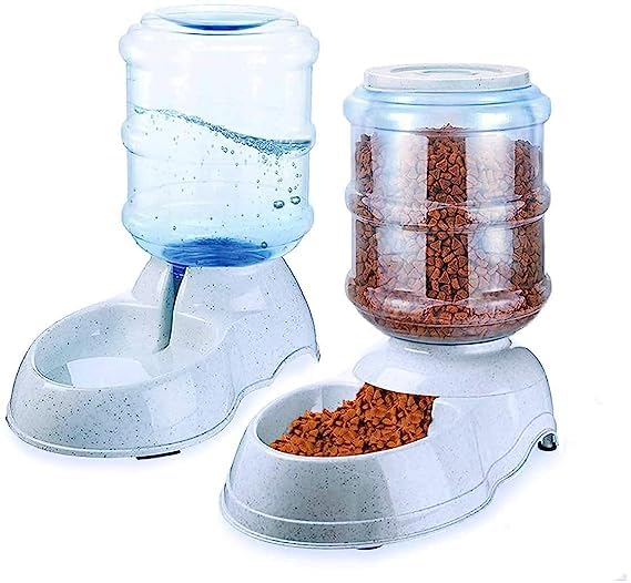 GLIVE (LABEL) Pet Feeder Food Dispenser/Water Dispenser For Dogs & Cats, Self-Dispensing Gravity Plastic Pet Food Feedeer Water Dispenser Bowl (Pet Water + Food Feeder Bowl Set),14 cm,H_8 cm,W_12 cm