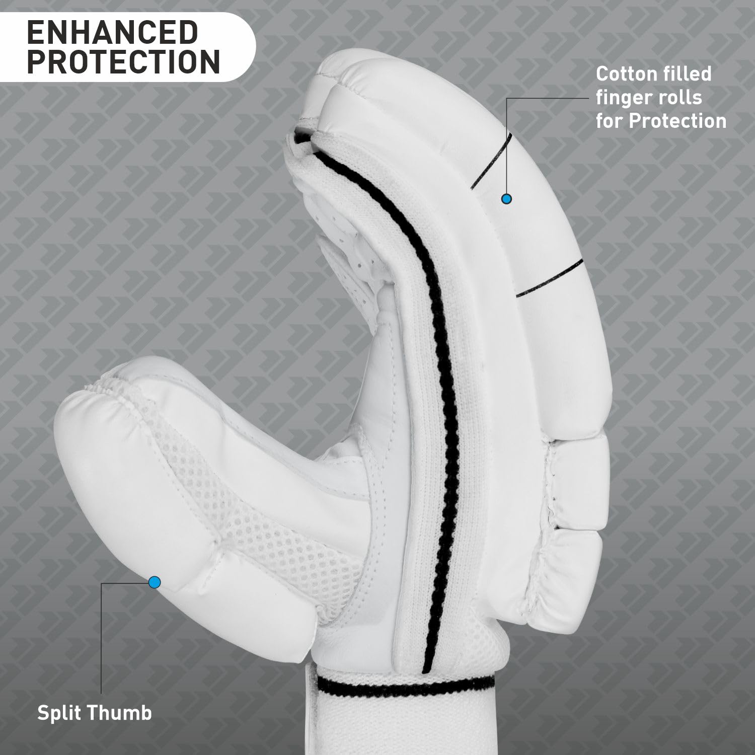 Traditionally designed economical batting glove. Pre-curved finger gloves and Traditionally Designed. Made of high quality PVC material Calm leather palm. Cotton filled finger rolls for Additional protection. Airflow gusset for ventilation and comfort. Additional leather patch on hard hitting areas. Elasticated wrist with Velcro fastening. Soft Fill Lining and split thumb for extra protection.