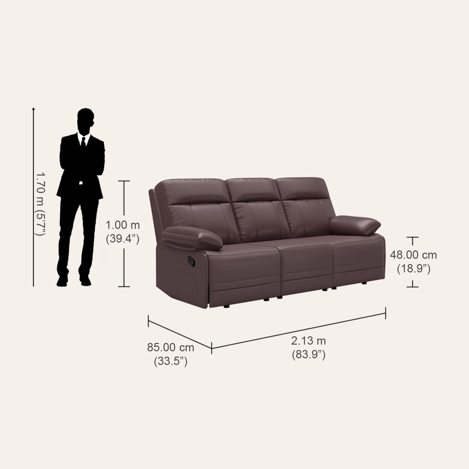 Ultimate Comfort – The soft foam provides a sinking feeling along with floating effect while seating. High backrest cosy recliner which can be reclined at any angle with maximum inclination of 140 degree.
