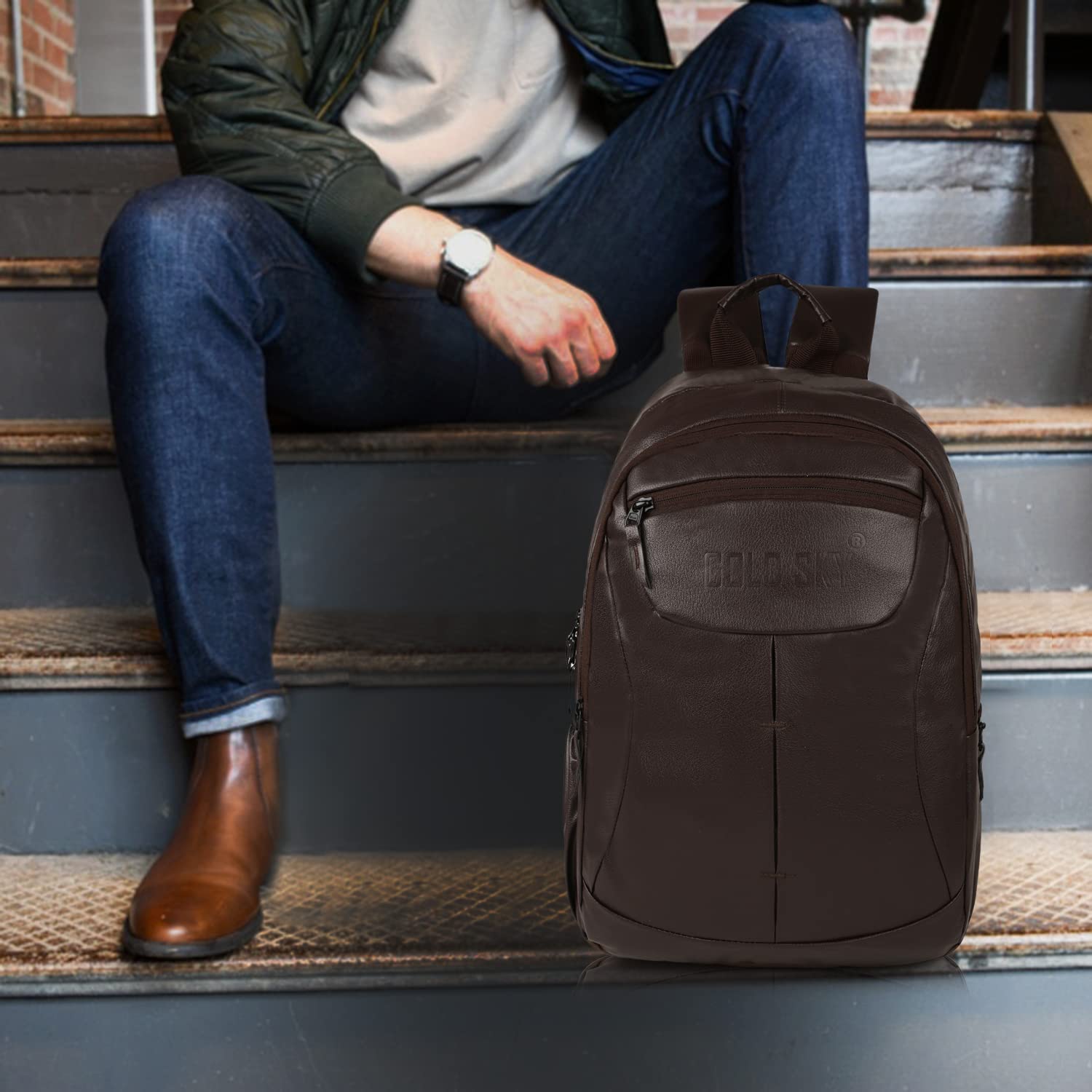 GOLD SKY 30 liters Faux Leather Laptop Backpack Travel for Men and Women for 15.6 Inch Laptops