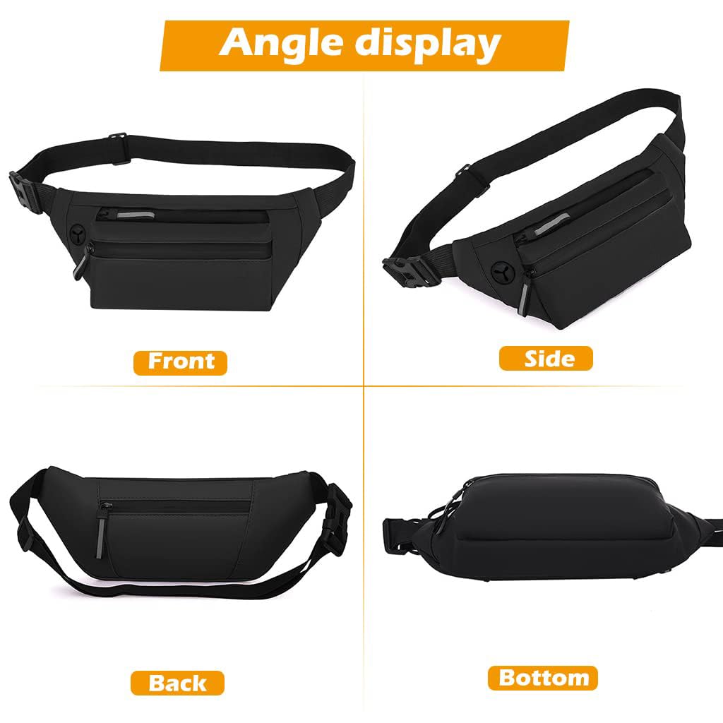 LARGE CAPACITY: Our waist pack have 4 zippered pockets and 1 main pocket compartment, all with reinforced double stitches and nylon lining. The pocket can comfortably hold mobile phones, wallet, charging treasure, keys, earphones and so on.