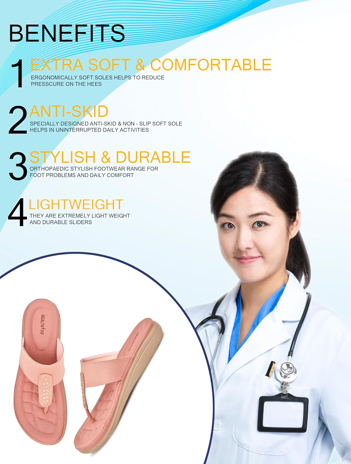 Healthfit diabetic and orthopedic footwear intended to protect and comfort to fit the human foot. Foot Non-binding relaxed fit and maximum protection against pressure points. The premium orthopedic footwear Healthfit has been dedicated to designing the best therapeutic features, and to offer the world’s most comfortable best walking footwear. Healthfit are also engineered to help reduce ball of the foot pain, heel pain, arch pain, knee pain, low back pain, and to enhance comfort for diabetic and orthopedic footwear.MCP Material Used In Foot Bed Product; Used In Heel Pain, Arch Pain, Clow Toes, Corns Diabetic Foot and Other Foot Problem. HEALTH FIT which provides you high style and comfort in this trendy pair. These comfortable, durable and lightweight will become your favourite Footwears.