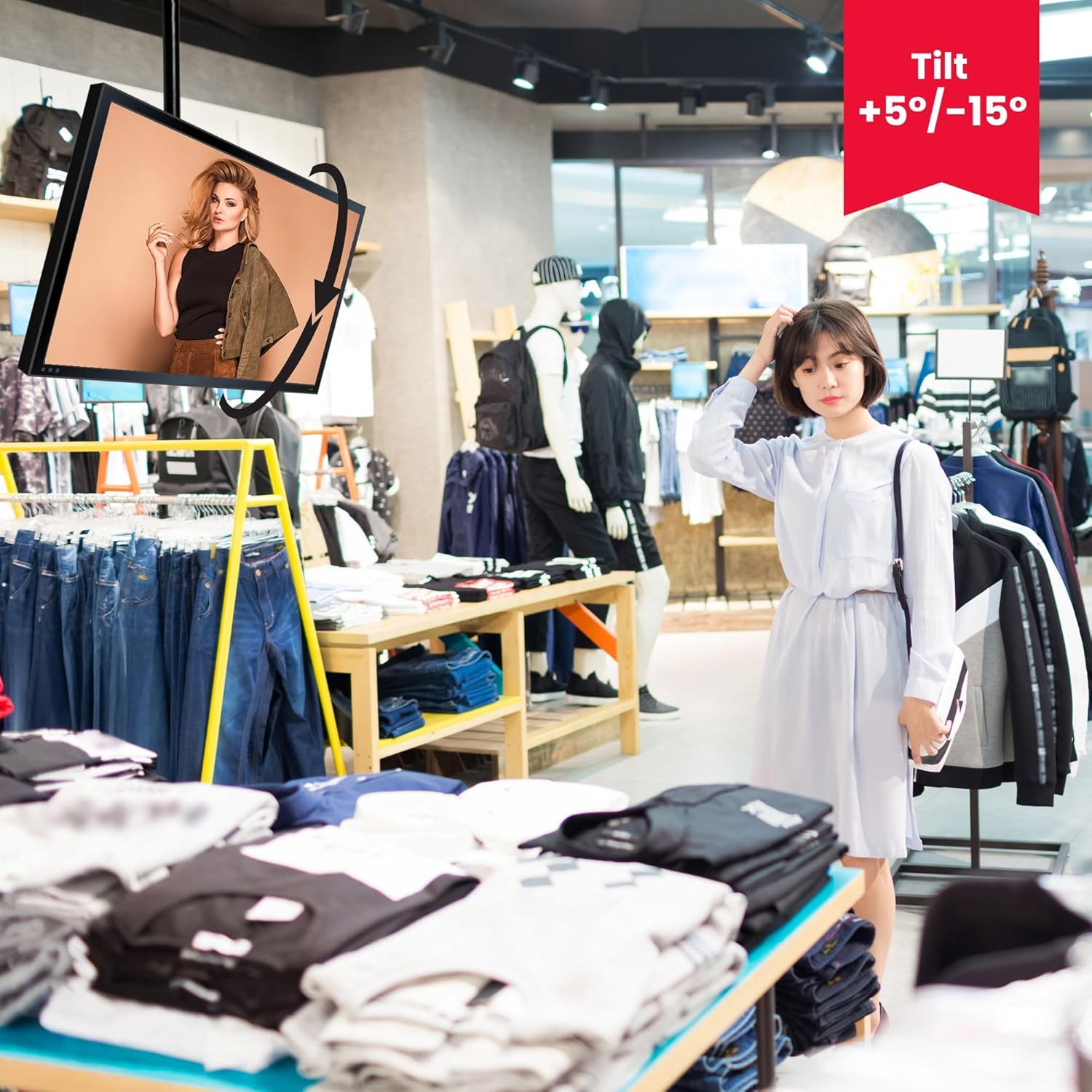 Movable & Adjustable Viewing – Enjoy 360° swivel rotation and ±15° tilt, plus telescopic height adjustment to get the perfect viewing angle every time.