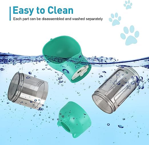 💧Safe & Durable Materials: This dog water bottle is made of food grade ABS+PC, allows your furry friend enjoy safety water and food at any time and any where; With high temperature resistant, makes it durable.