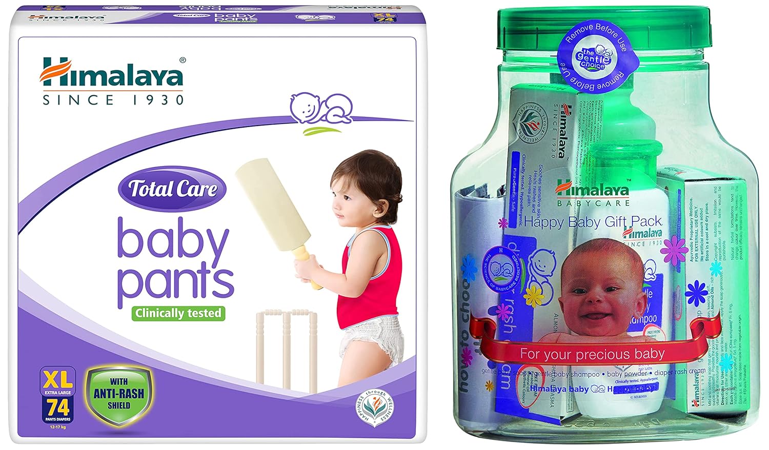 Himalaya Total Care Baby Pants Diapers, Extra Large (12-17 kg), 74 Count & Himalaya Herbals Babycare Gift Jar (Soap, Shampoo, Rash Cream and Powder)