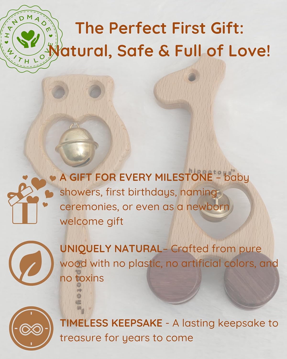 Perfect for Little Hands – Our 100% Natural Wooden Rattle Set from HippoToys is designed specifically for babies from 0-6 months. These newborn toys are lightweight and easy to grasp, making them ideal toys for a 2 month old baby or a 3 month old baby. The rattles also serve as excellent baby toys for 6-12 months, promoting motor skill development. A must-have in your collection of new born toys.