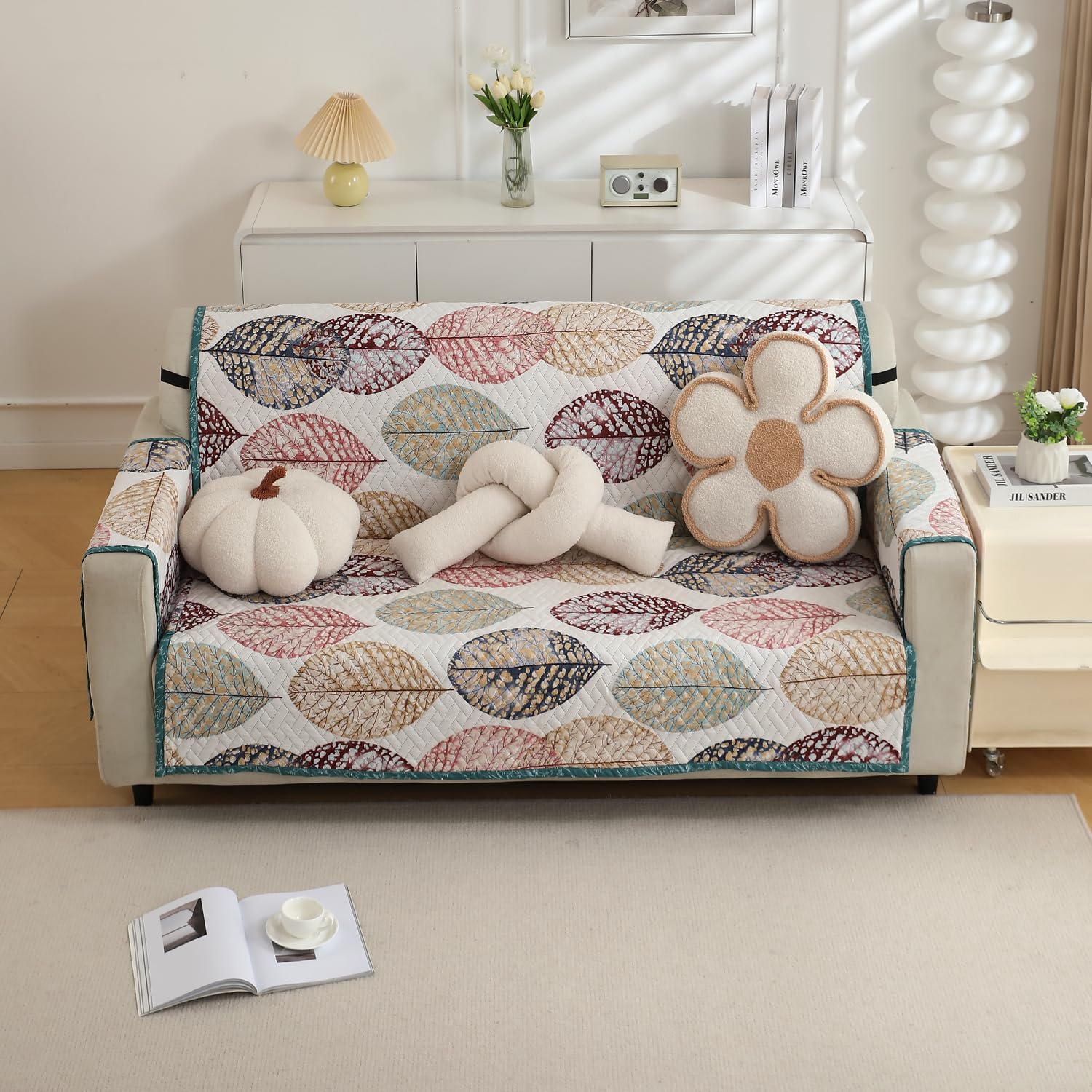 HOKIPO ‘HomeHues Series’ Quilted Printed Sofa Cover with Pockets for 2 Seater, Multicolor Linden Leaf (IN-812-D7)