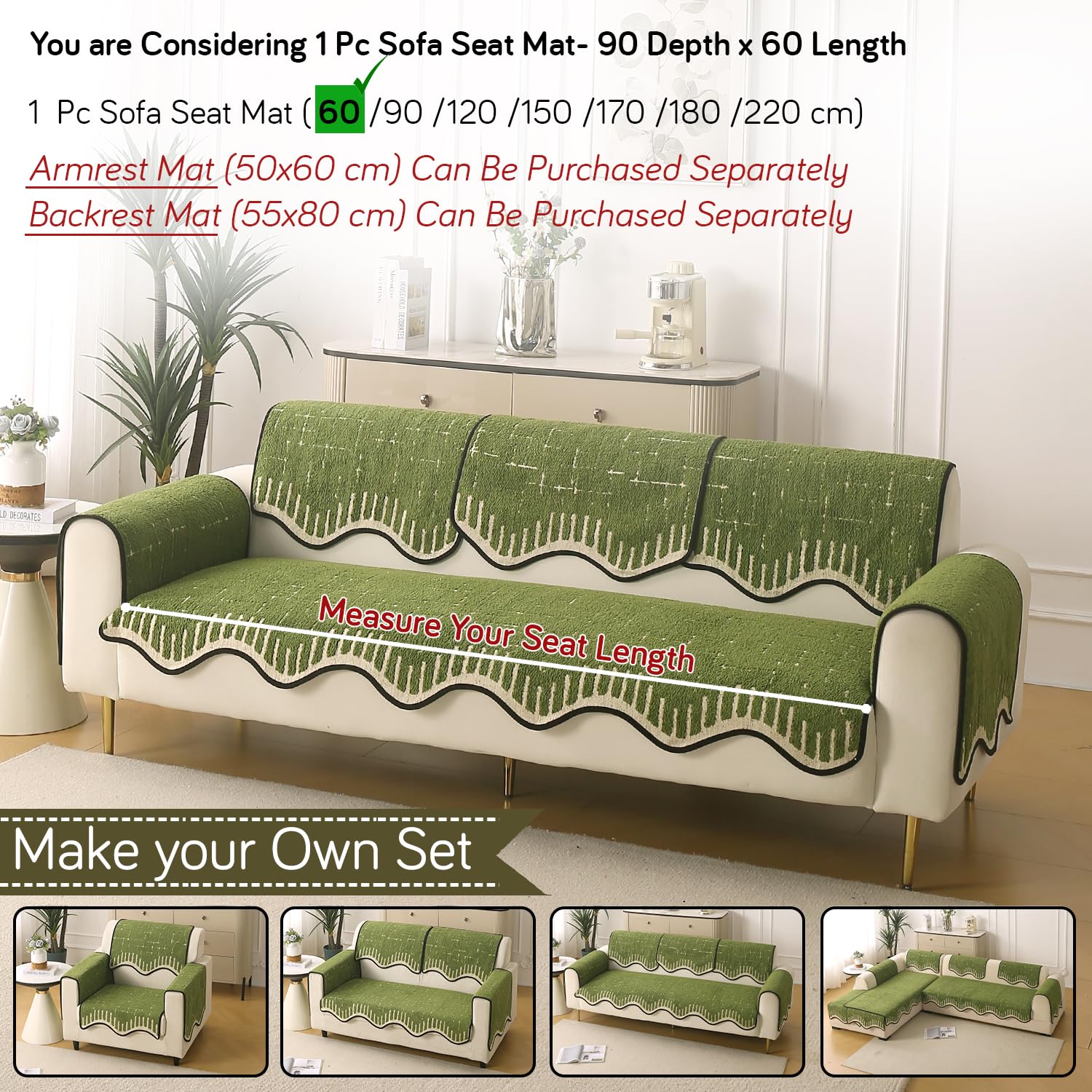Premium Supple Soft Wavy with Curve Design – Sofa cover mats for most sofa types. Available in a range of sizes. Buy one or more mats to make an entire sofa cover set for 1/2/3 seater sofa, L shape sofa, 3 seater and 2 seater sofa or 3+1+1 seater sofa and also 5 seater sofa. All you have to do is measure your sofa and order accordingly. Armrest cover can be purchased separately