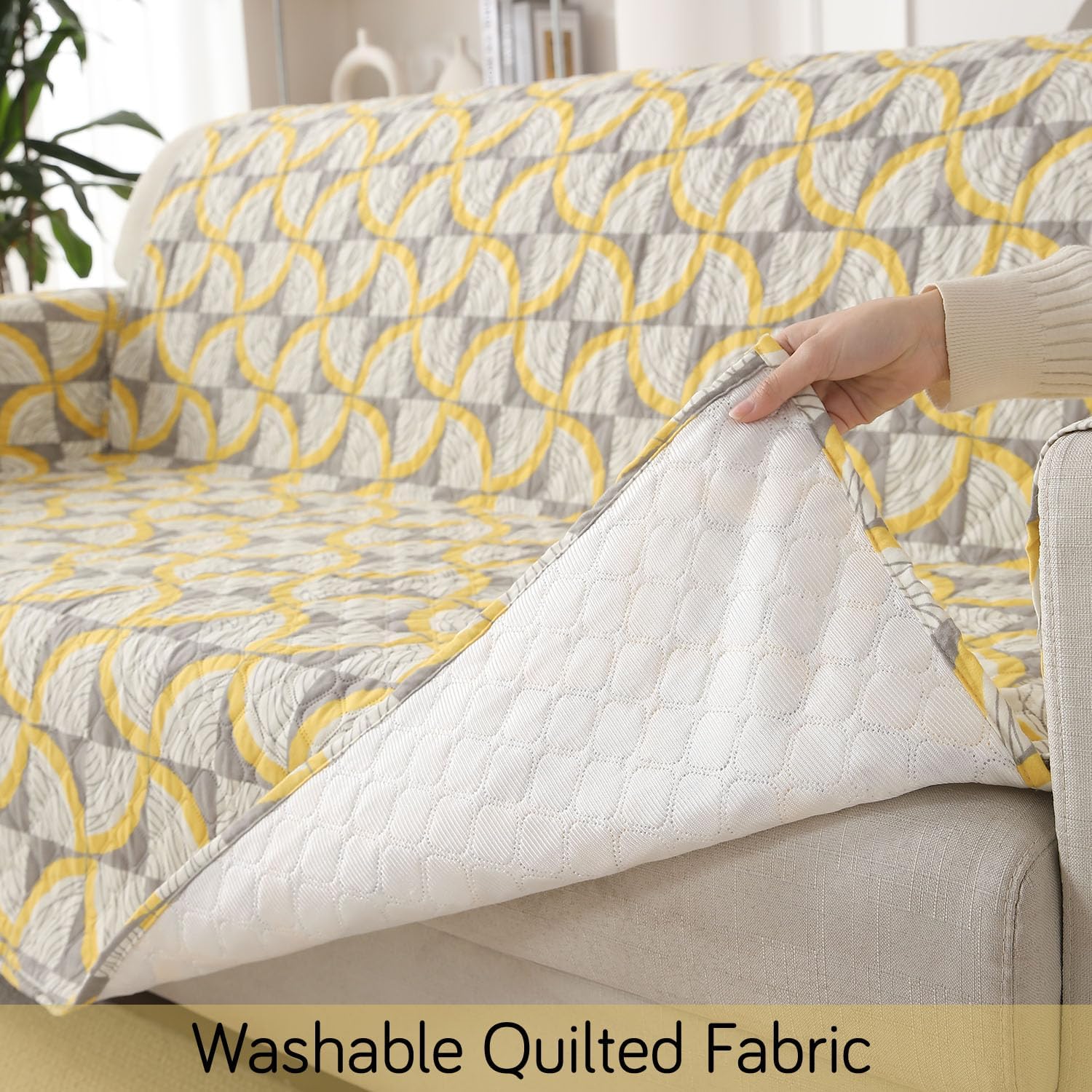 SUPER DURABLE 3-LAYERS QUILTED FABRIC : HOKIPO polyester sofa mats are quilted from tear-resistant polyester fabric. This durable sofa slipcovers are composed of 3 layers with 120 GSM heavy duty polyester fabric on top, 120 GSM knitting fabric as backing & 120 GSM poly foam microfibre filling in between for extra comfort & softness.
