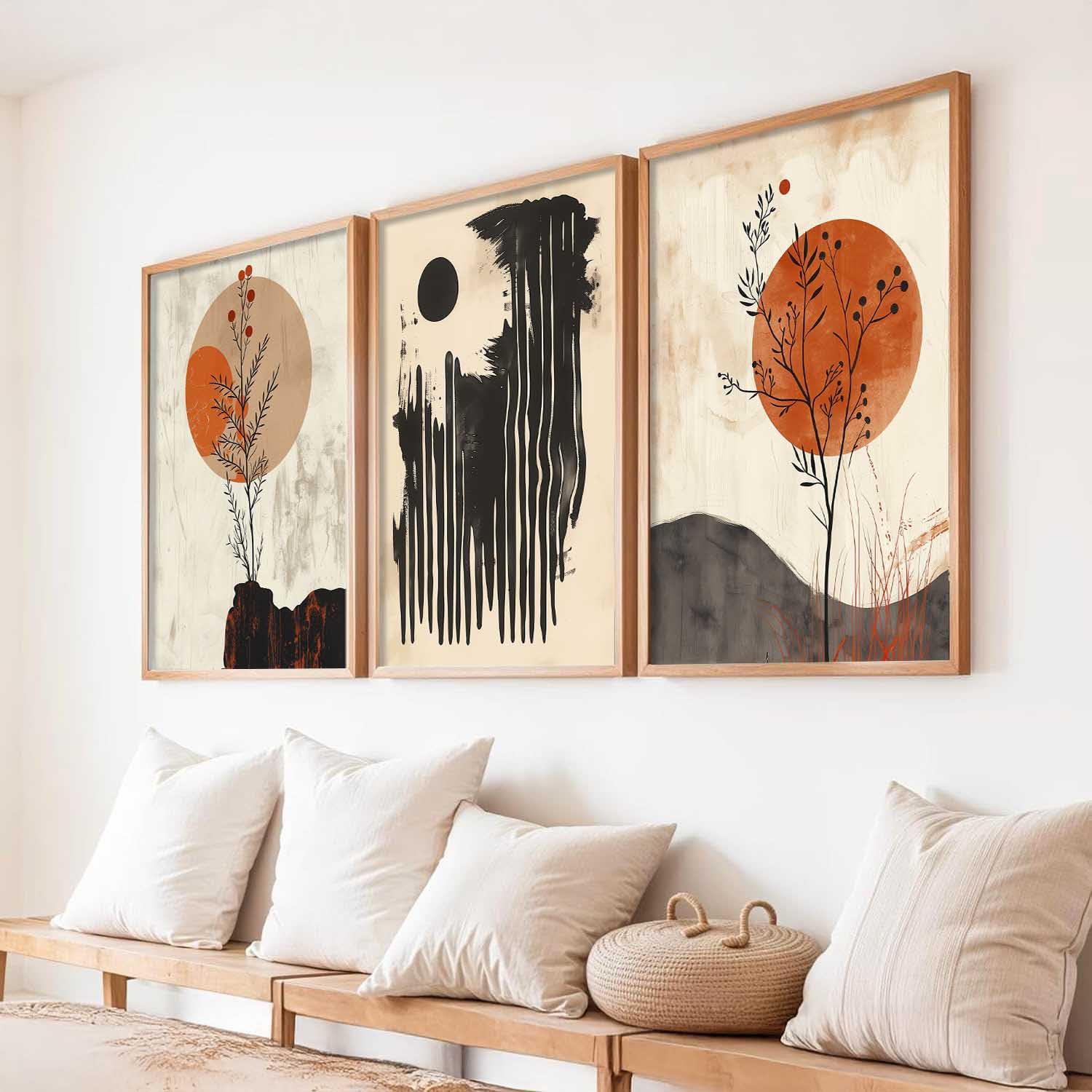 HOTHOUSE Boho Art Home Decoration Paintings With Frame For Living Room Bed Room Hotel Wall Decor Digital Reprint Set of 3 (13X17 inch)