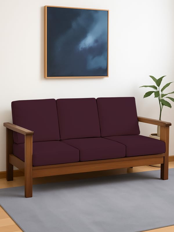 HOTKEI Wine (Pack of 6) 200 GSM Fabric Wooden Sofa Seat Cover Elastic Stretchable Cushion Seat Slip Cover Protector for Wooden Sofa Set 3 Seater Antislip Full Covers for Living Room