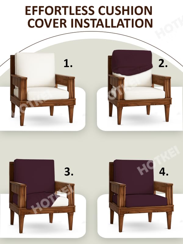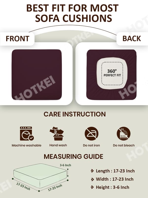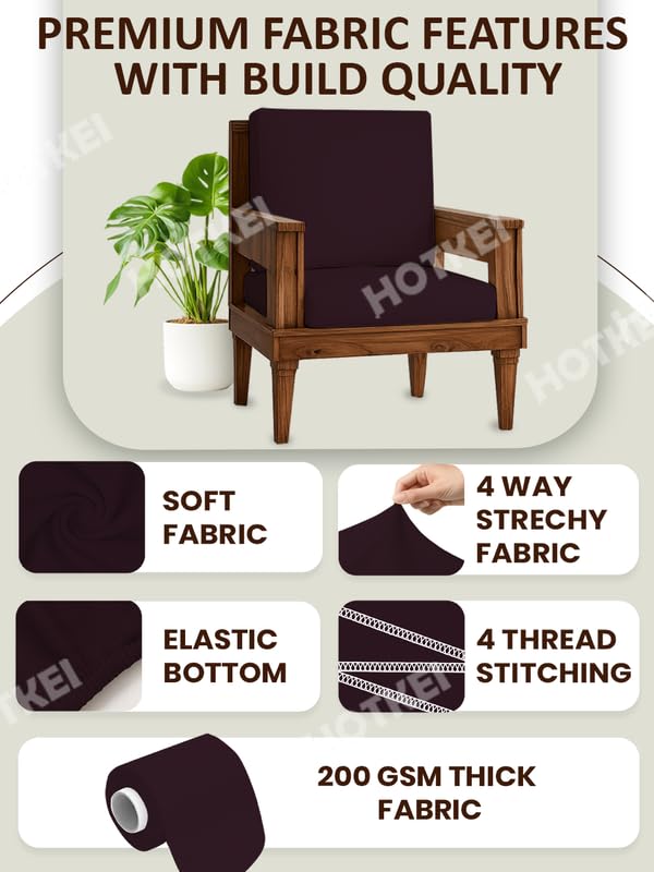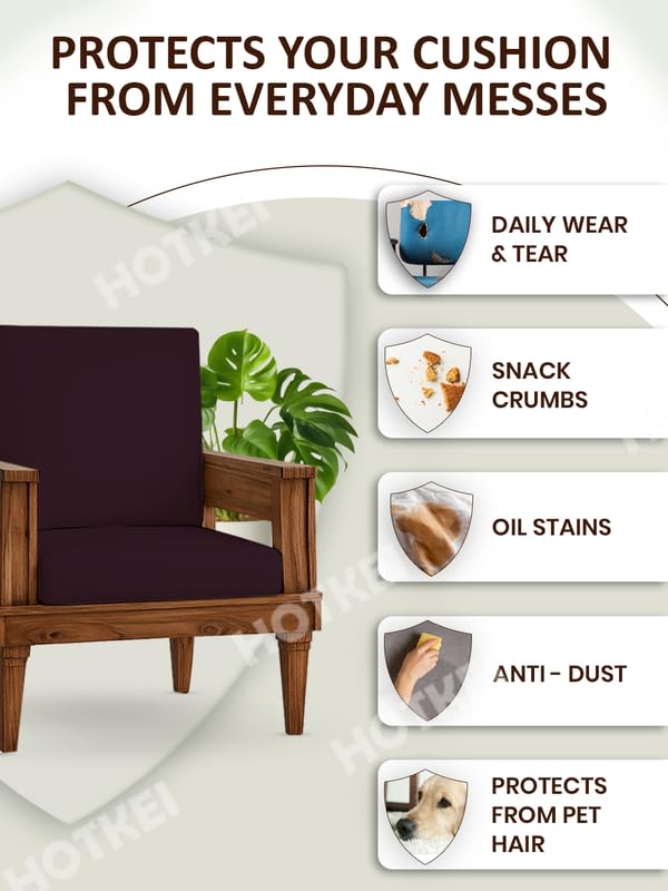 Refresh your living space with the HOTKEI Wooden Sofa Cushion Covers, designed to combine style, comfort, and protection. This Pack of 6 stretchable cushion seat covers is made from premium 200 GSM polyester-spandex fabric, offering softness, durability, and excellent elasticity. The 4-way stretch and anti-slip backing ensure a secure fit that stays in place without wrinkling or shifting.Perfectly suited for 1+1, 2-seater, and 3-seater wooden sofas, these cushion covers offer an ideal solution for protecting your furniture from spills, stains, pet hair, and everyday wear and tear. Whether you have a 3+1+1 seater, a full wooden sofa set, or just want a 3-seater sofa cover, HOTKEI covers meet various needs with style.The slipcovers are tailored to fit cushions sized between:Length: 17–23 inches, Width: 17–23 inches, Height: 3–6 inches.HOTKEI offers a variety of options including:Wooden sofa cushion cover for classic designs, Sofa cover for 2 seater and 3 seater arrangements, Set of 3 cushion covers for compact seating, 5-seater wooden sofa cover for full coverage, Sofa protector covers for added defense against damage. Available in neutral tones, these cushion covers blend well with both modern and traditional décor. They are easy to install—simply stretch them over the cushions—and are machine washable, retaining their shape and elasticity wash after wash. HOTKEI cushion covers are not only functional but also a cost-effective way to update and protect your furniture. Whether you’re searching for a foam cushion cover, a set of 10 slipcovers, or a fully covered 5-seater solution, HOTKEI provides the perfect fit for your home.