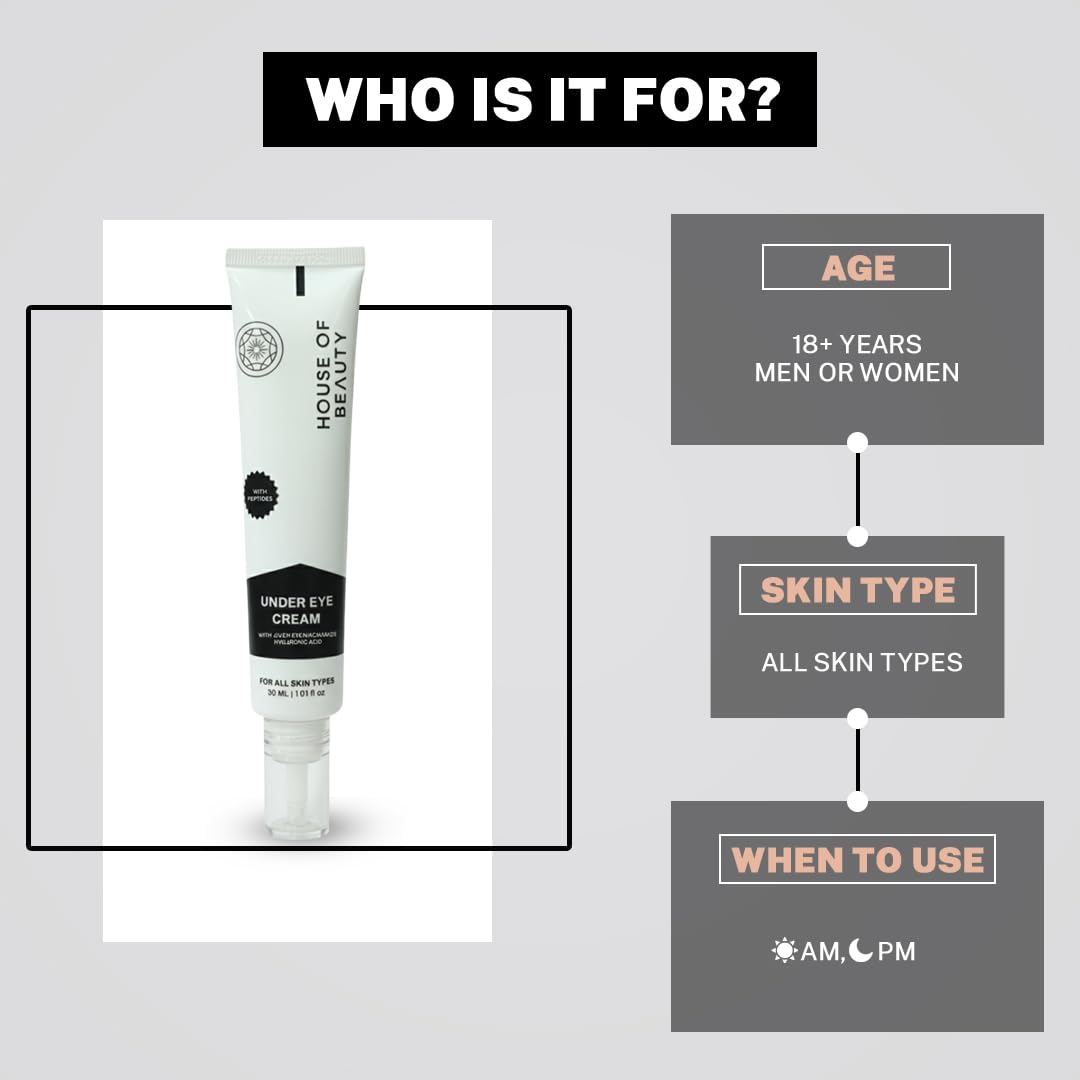 HOUSE OF BEAUTY Under Eye Cream with Juven-Eye Peptide, Hyaluronic Acid and Niacinamide for Dark Circles, Fine Lines, Dehydration and Puffy Eyes for Men & Women – (30 ml)