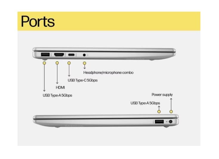 Ports – 1 USB Type-C 5Gbps signaling rate (supports data transfer only and does not support charging or external monitors); 2 USB Type-A 5Gbps signaling rate; 1 AC smart pin; 1 HDMI 1.4b; 1 headphone/microphone combo|