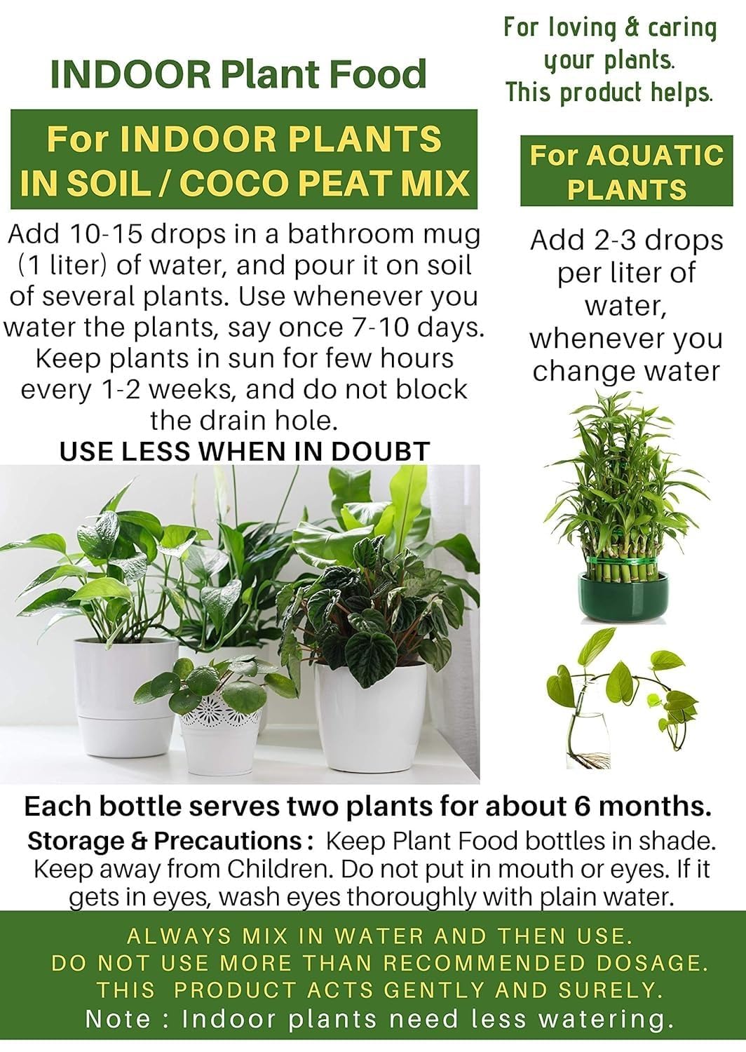 Specially Formulated for Indoor Plants: Designed for soil, coco peat, and mix media beds, perfect for plants like Lucky Bamboo, Monstera, Pothos, and Money Plant.
