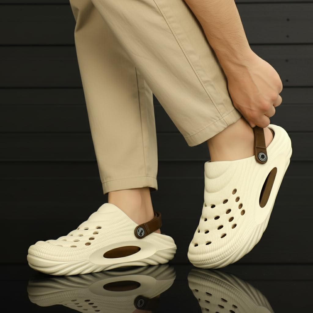 Inklenzo Men’s Sandals Clogs Mules for Men & Boys – CreamComfortable, Extra Soft, Lightweight, Non-Slip, Waterproof, Adjustable Back Strap, Stylish, Classic, Casual, Everyday Mules