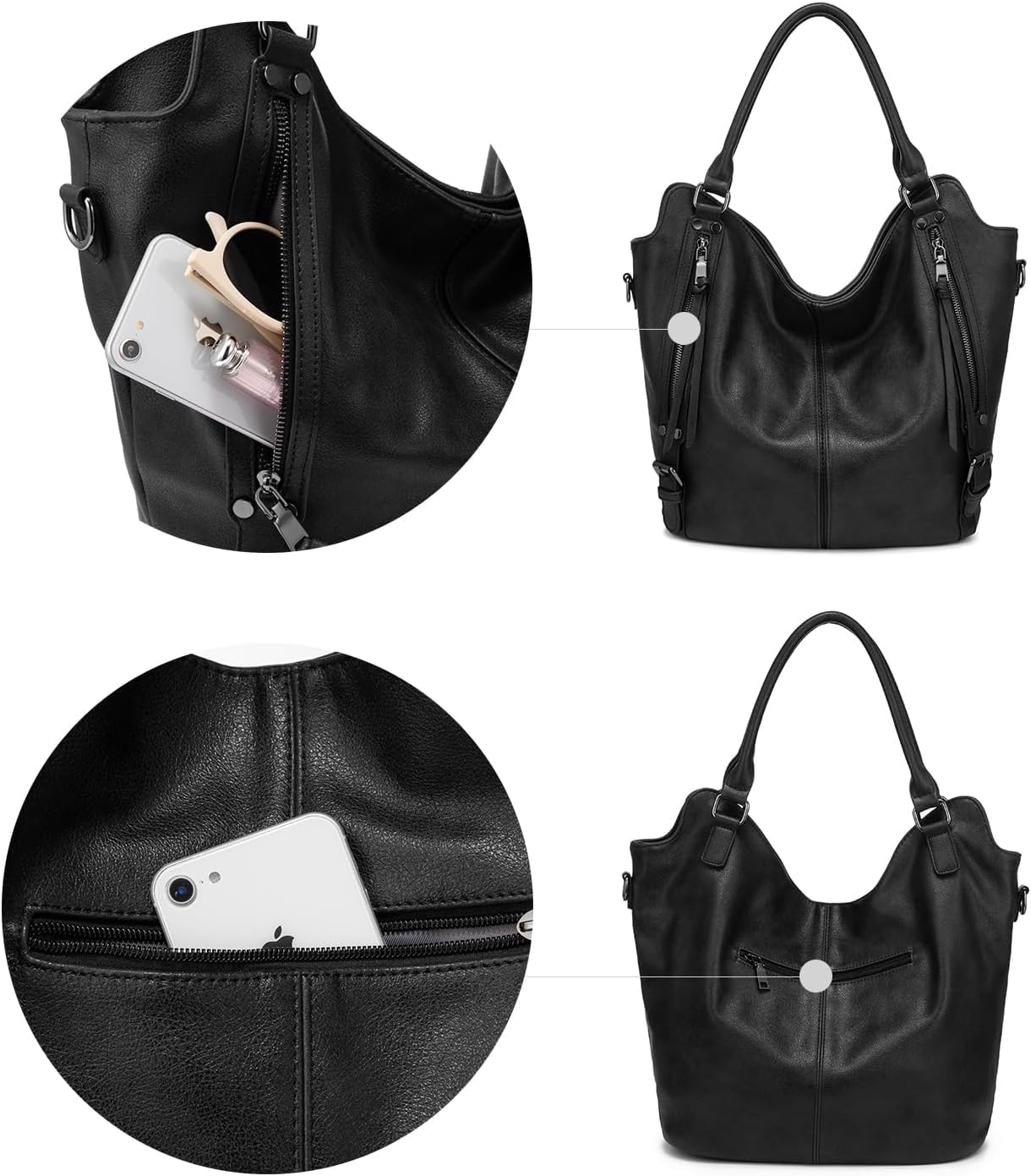 These stylish shoulder bag are made of faux leather. It features a durable smooth zipper with well-made stitching that runs smoothly. It is a spacious and organized inner space to fit your essentials. Ladies hobo handbags has one main compartment,1 middle compartment, 1 zipper pocket and 2 slot pockets, with 1 back zipper pocket, 2 side zipper pockets with tassel enough capacity to organize your daily items, such as 9.7-inch iPad, book, umbrella, wallet, water bottle, iPhone and cosmetics. The set comes with a matching zippered Pouch, perfect for carried separately or as an organizer inside the tote. It’s ideal for keeping your smaller essentials neatly stored and easily accessible. Perfect for dating, shopping, working, traveling, vacation, everyday use etc. Nice Gift for families, wife, friends, parents on any significant moments: anniversary, birthday, holidays, Celebration Day, Valentine’s Day.
