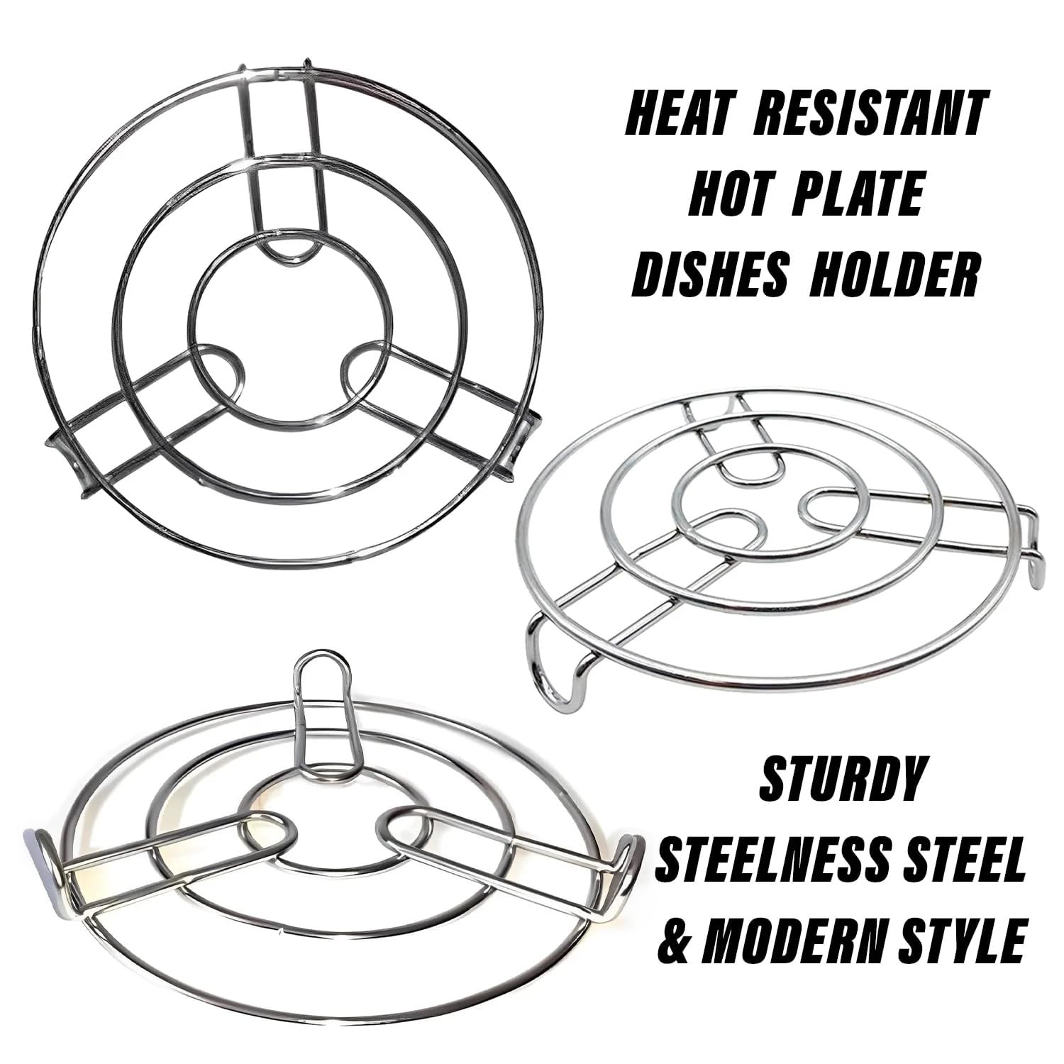 Package Content: Set of 4 pieces hot pot stand / Trivet / Steel Round Donga Cooker Stand/Steaming Tray Stand / Round Table Ring Set