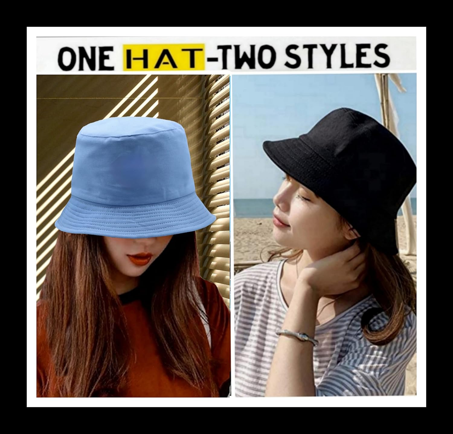 JAZAA Bucket Hat for Women Men Teens Reversible Summer Beach Sun Hat Packable Fisherman Cap for Travel Outdoor Hiking