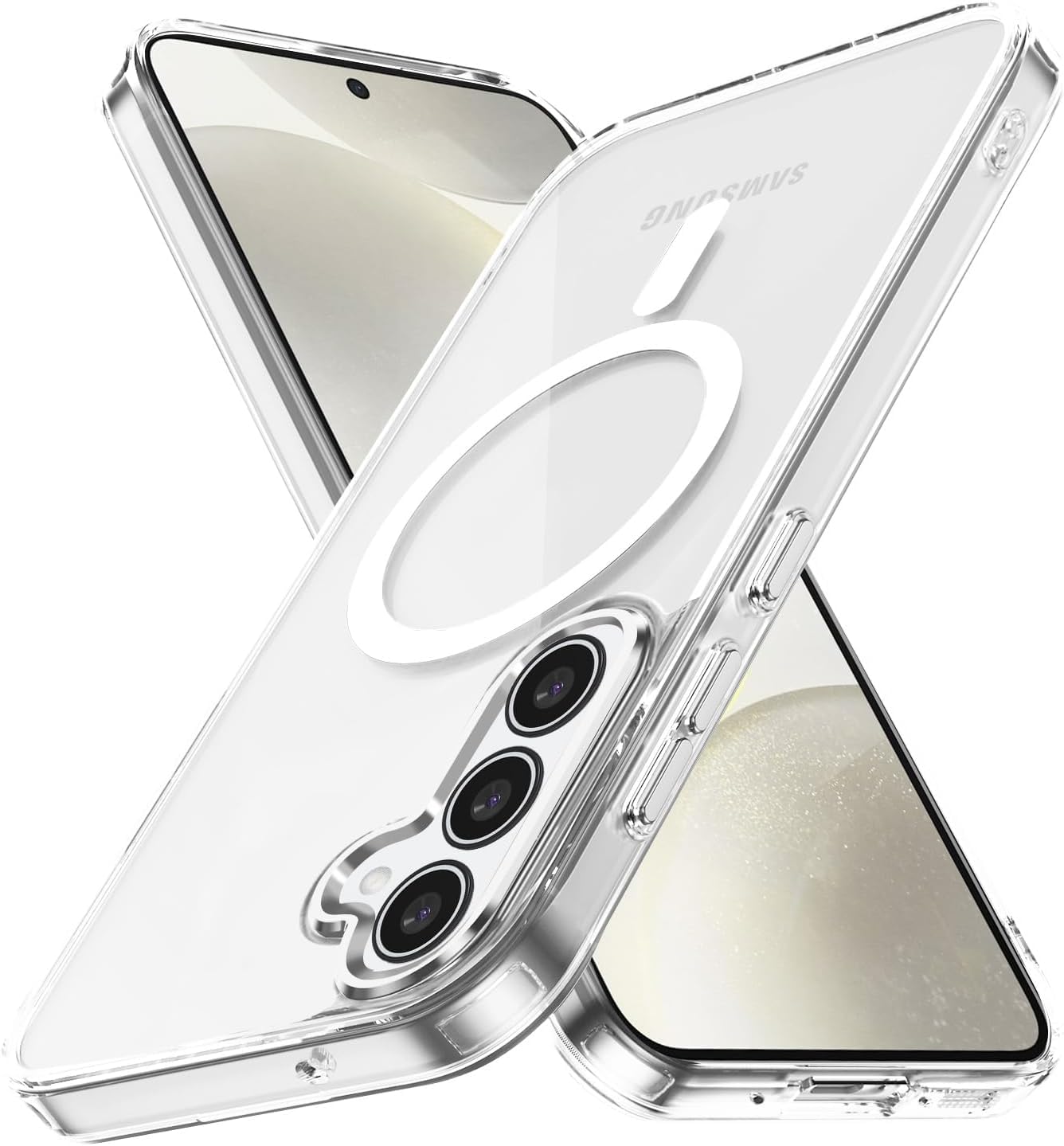 JGD PRODUCTS Magnetic Silicone Case for Samsung Galaxy S24FE 5G Compatible with MagSafe, Shockproof Phone Bumper Cover, Anti-Scratch Clear Back (Clear)