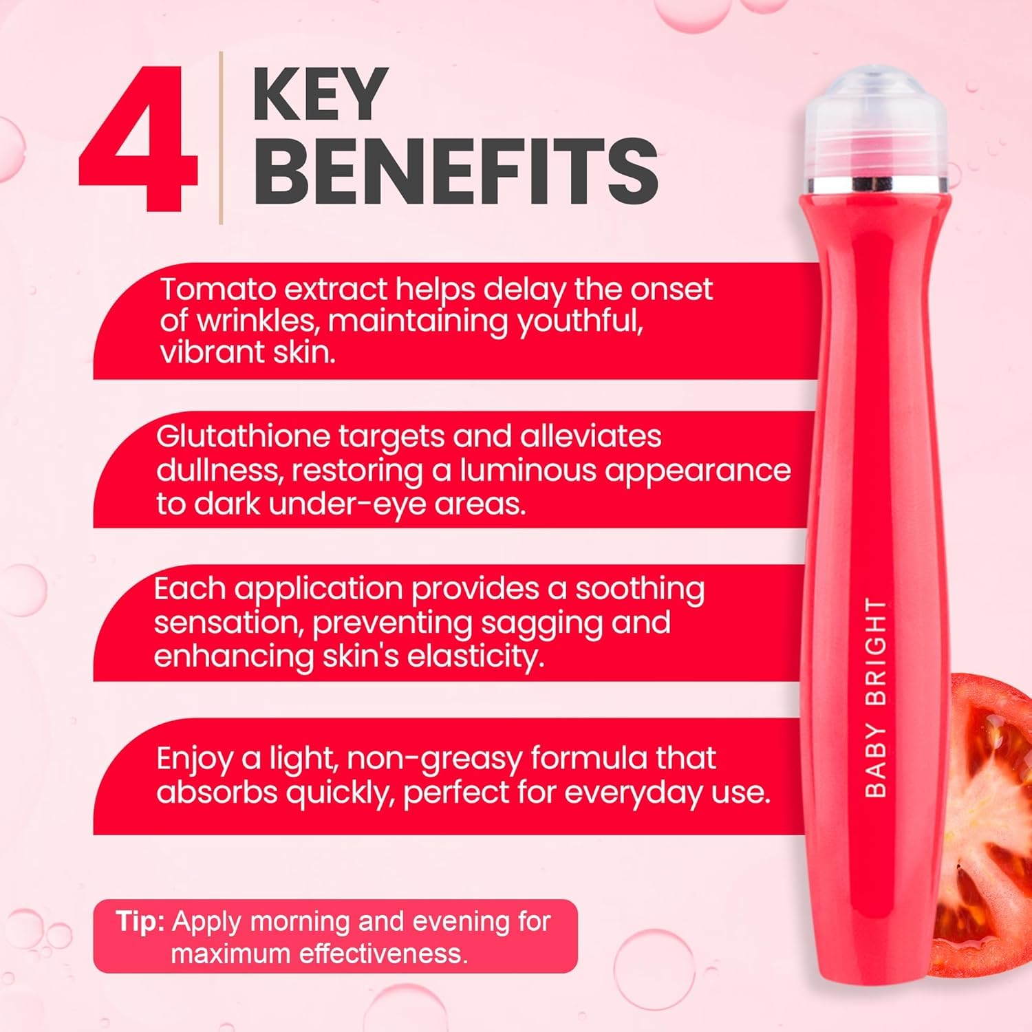 Convenient and Easy-to-Use Applicator: The serum comes with a rollerball applicator that allows for targeted application. It’s perfect for massaging the serum into the skin while promoting circulation, which can help with reducing puffiness and promoting a refreshed look.