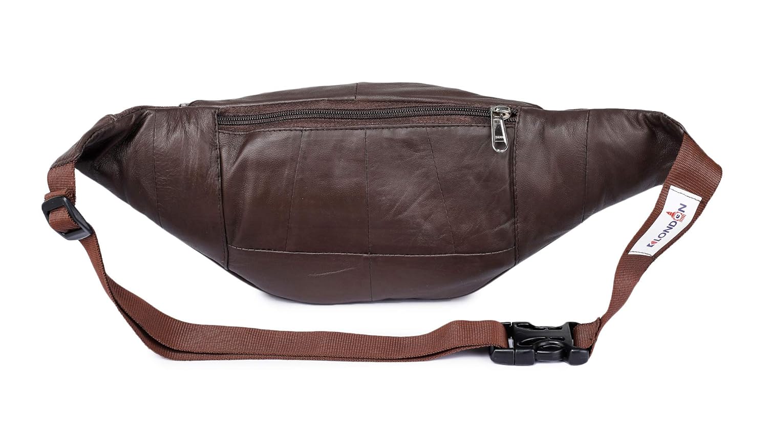 Stylish & trendy Brown coloured Waist bag from the house of K London, designed to carry all small and regular accessory like cards, keys, earphones, power bank, coins, pen, Money,Passport,Card holders and other valuables etc. Made with high quality soft Genuine Leather. It has Adjustable Strap to fit waist of all sizes. This waist pouch has 6 zipper pockets in the front and 1 zipper pocket at back.This Waist pouch is ideal for men and women for travelling. Avoid contact with moisture and water. Crafted from high-quality leather in a classic brown hue, this waist bag is designed to enhance your on-the-go experience while keeping your essentials secure and easily accessible. Whether you’re embarking on a new adventure or simply running errands, this waist bag offers the perfect solution for carrying your belongings with ease. The sleek and compact design allows you to wear it comfortably around your waist, leaving your hands free to explore and navigate your journey. Inside, you’ll find a dedicated passport holder and a spacious pouch, thoughtfully designed to keep your travel essentials organized. From your passport and cards to your smartphone and other necessities, everything has its place, ensuring a hassle-free and organized travel experience. Crafted from durable leather, this waist bag ensures longevity, making it an ideal companion for your countless journeys ahead. The adjustable strap provides a personalized fit, catering to your comfort and style preferences. Upgrade your travel gear with the 268_Brown Leather Brown Waist Bag. Embrace the convenience of hands-free carrying, the security of organized storage, and the timeless appeal of genuine leather, all encapsulated in this versatile and stylish waist bag.