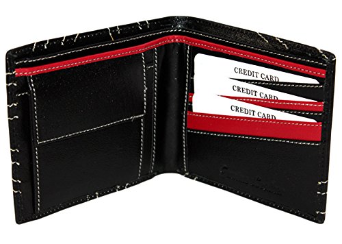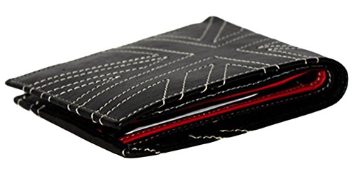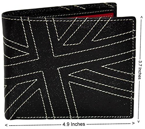 A Bi-Fold Black coloured wallet made in Real Leather. It comes with 3 card slots,2 note compartments and a coin pocket for utility.Its a classy wallet and is easy to maintain. It comes with a Union Jack design in white coloured thread and also has a great combination of black and red leather. Avoid contact with moisture and water.Comes packed in an attractive gift box.