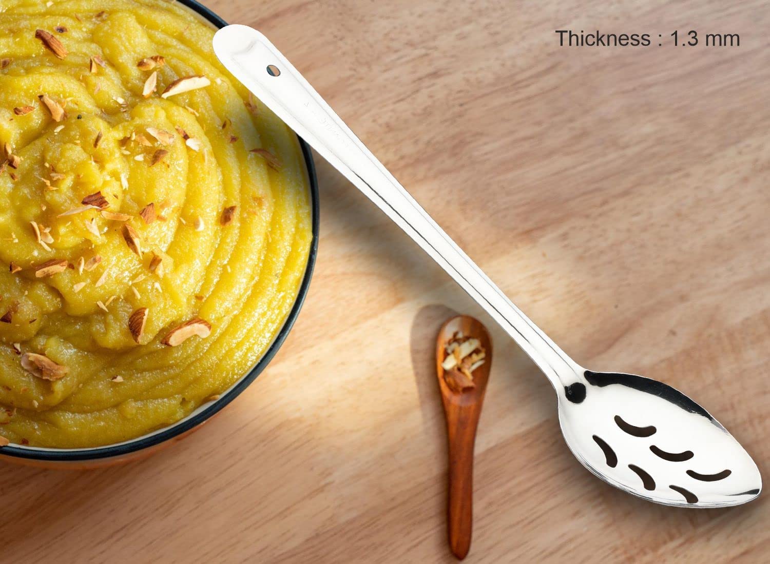 Slotted Design: Features a slotted spoon/chamcha shape for efficient draining.