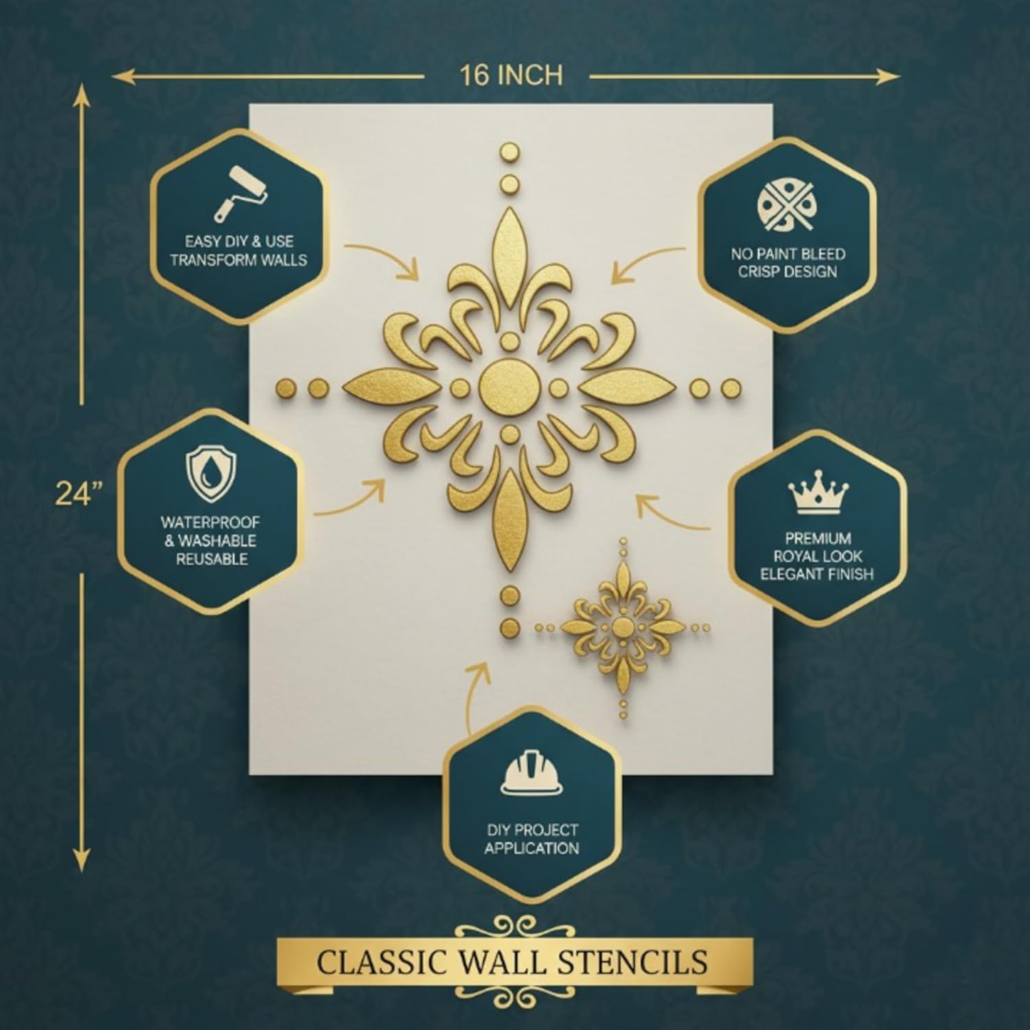 Package Contains: 1 Wall Design Stencil of 16-inch x 24-inch size