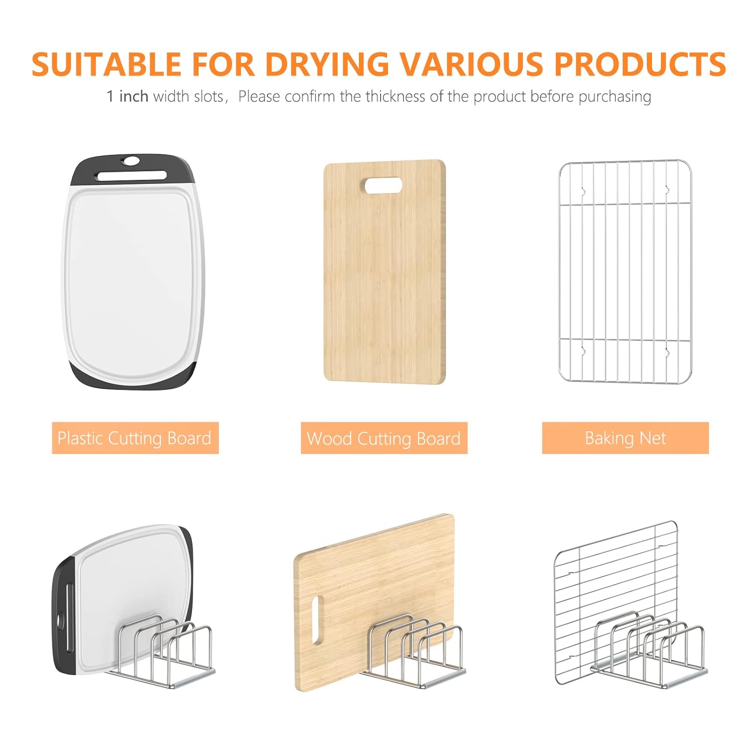 【Sturdy Structure】This cutting board rack is made of thick 304 stainless steel, quite compact and sturdy to use, it can last long time without the worrying to rust.