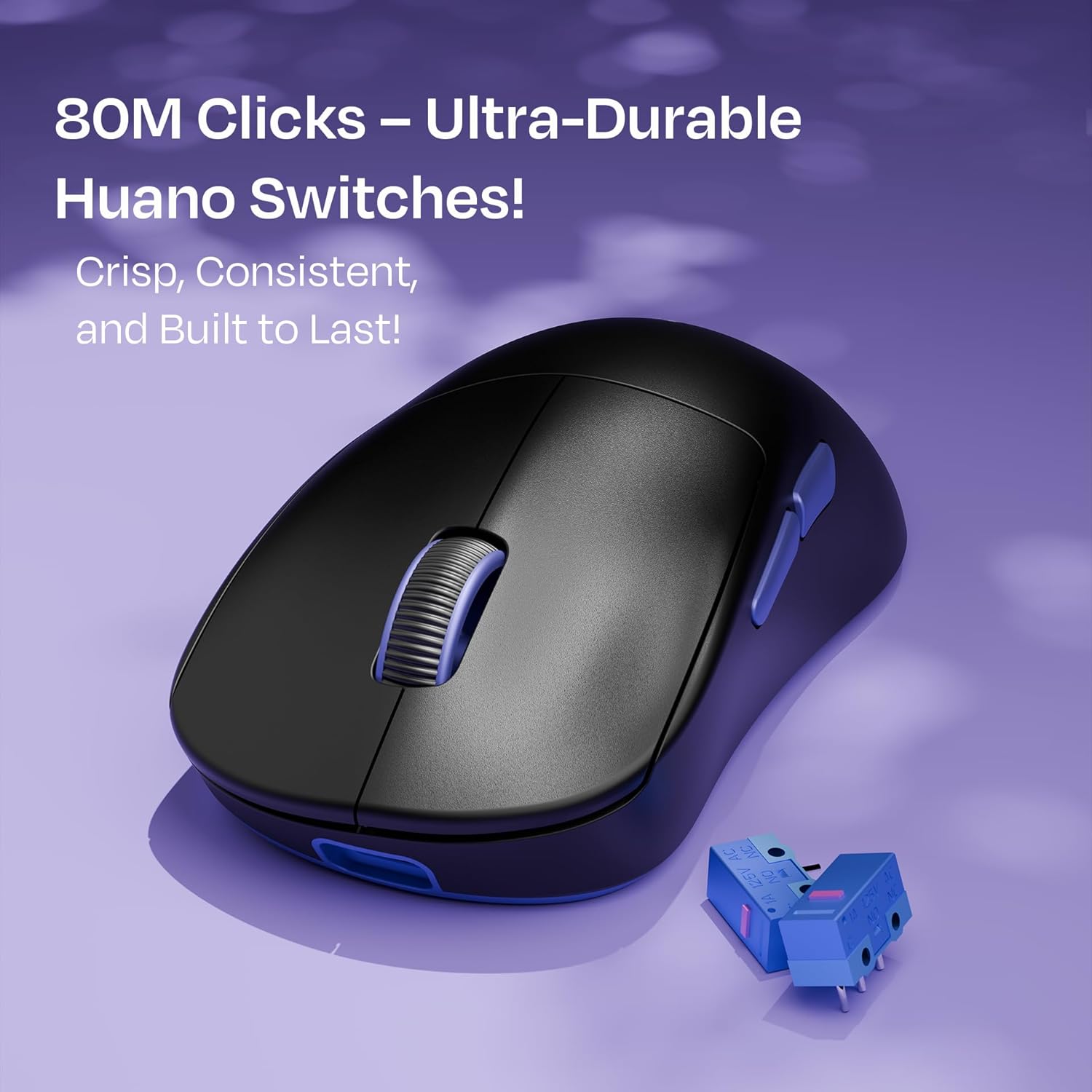 🚀 High-End Components for Maximum Durability – The gaming wireless mouse features a TTC Gold Encoder for a long-lasting scroll wheel and Huano side buttons rated for 3 million clicks.