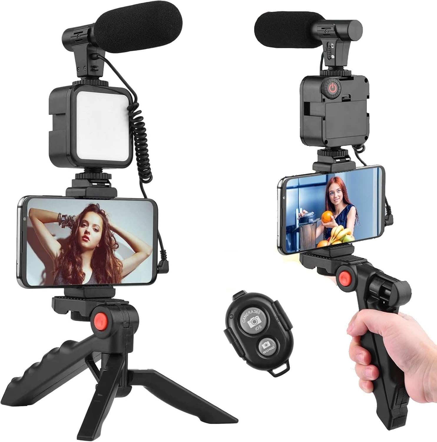 KRLZ Smartphone Vlogging Kit Video Kit for iPhone 15/14/13 Mini/Pro/Max, Android Smartphone w/Microphone Light Auto-Switch Phone Clip Combo for YouTube Tiktok Live Steam
