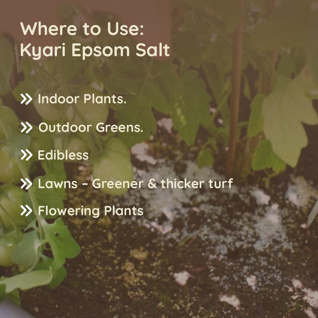 INTRODUCTION TO EPSOM SALT: Epsom Salt by Kyari is a naturally occurring mineral compound composed of magnesium and sulfate. Named after a saline spring in Epsom, England, where the compound was first discovered. Available in crystalline form, easy to dissolve in water for various gardening applications.