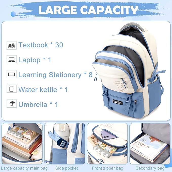 - Large storage capacity for books, laptop, clothes, and daily essentials