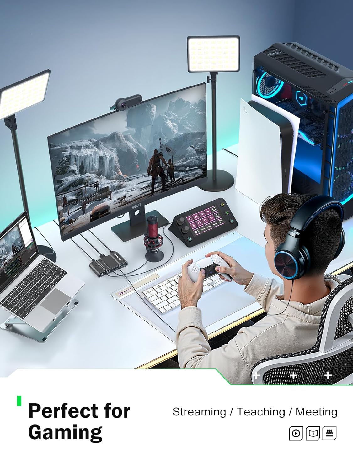 🎮[ Your ultimate capture card! ] 4K@60Hz lossless passthrough + cross-platform compatibility, seamless connection with PS5/Switch/PC. Game streaming and teaching recordings run lag-free from start to finish—say goodbye to lag worries and never miss a single amazing moment!