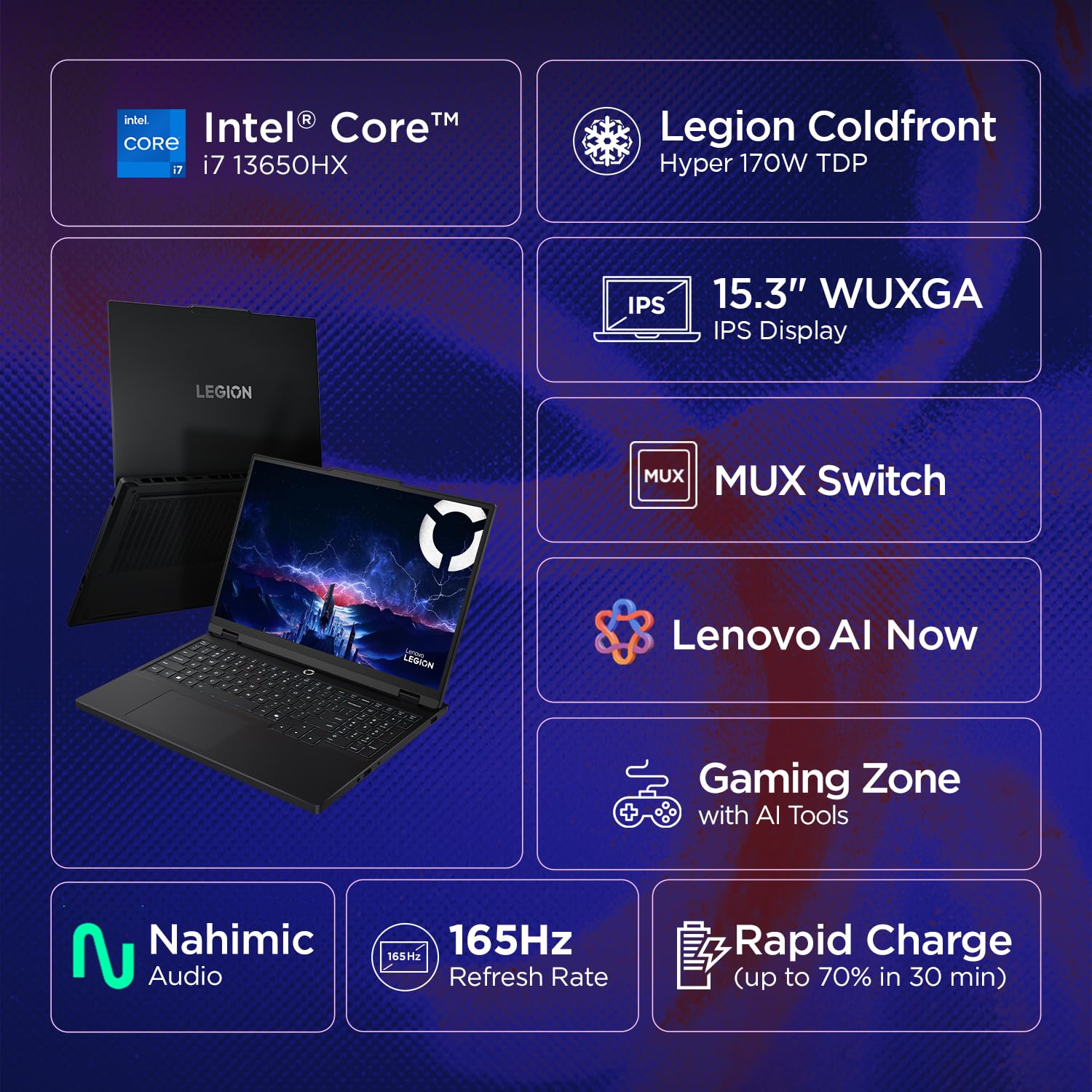 Lenovo Legion 5 2025 Intel Core i7-13650HX | NVIDIA RTX 5050 8GB (16GB RAM/512GB SSD/WUXGA IPS/165Hz/15.3″ (38.8cm)/Windows 11/Office 2024+AI Now/Black/2.1Kg), 83LY00SUIN AI Powered Gaming Laptop