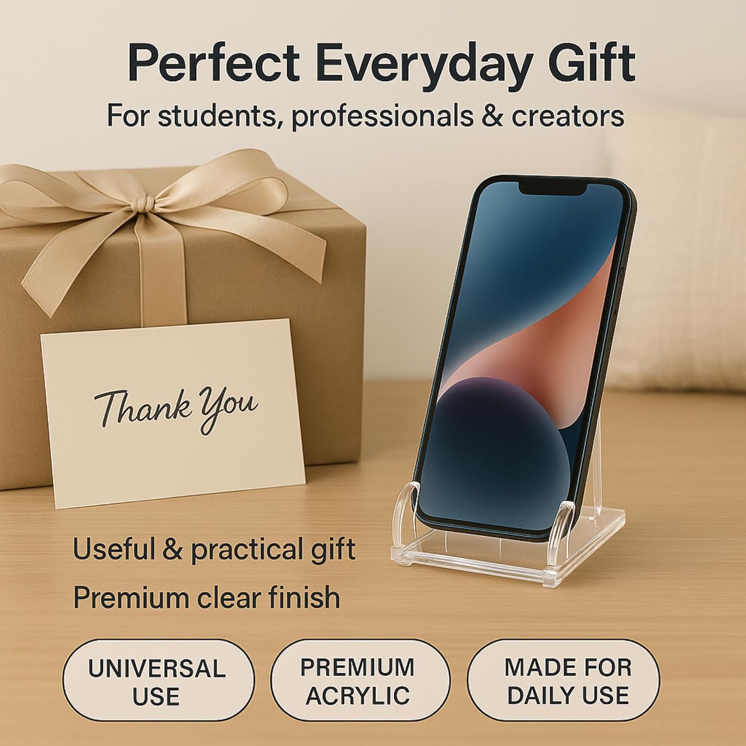 ✨ Premium Acrylic Phone Stand – Built from crystal-clear high-grade acrylic for durability and a stylish minimalist touch.