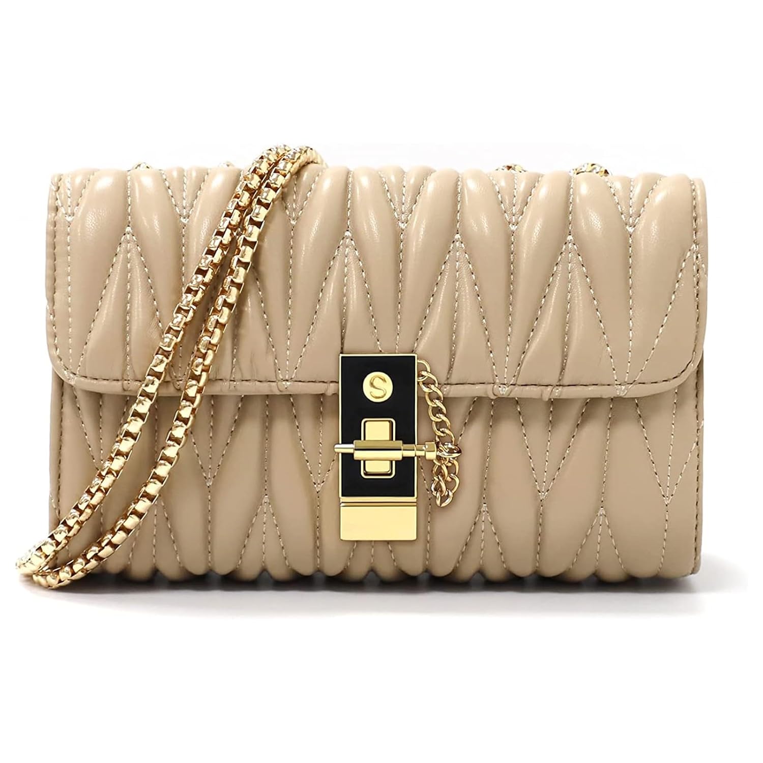 Premium quality smooth zippers, Fashion twist lock closure, and sturdy metal strap, this sling bag alleviates any concerns about wear and tear even with frequent use. Elevate your peace of mind as you enjoy the high-quality craftsmanship that ensures durability. Fashioned with impeccable details, these features not only enhance the bag’s functionality but also add a touch of sophistication to your accessory collection.