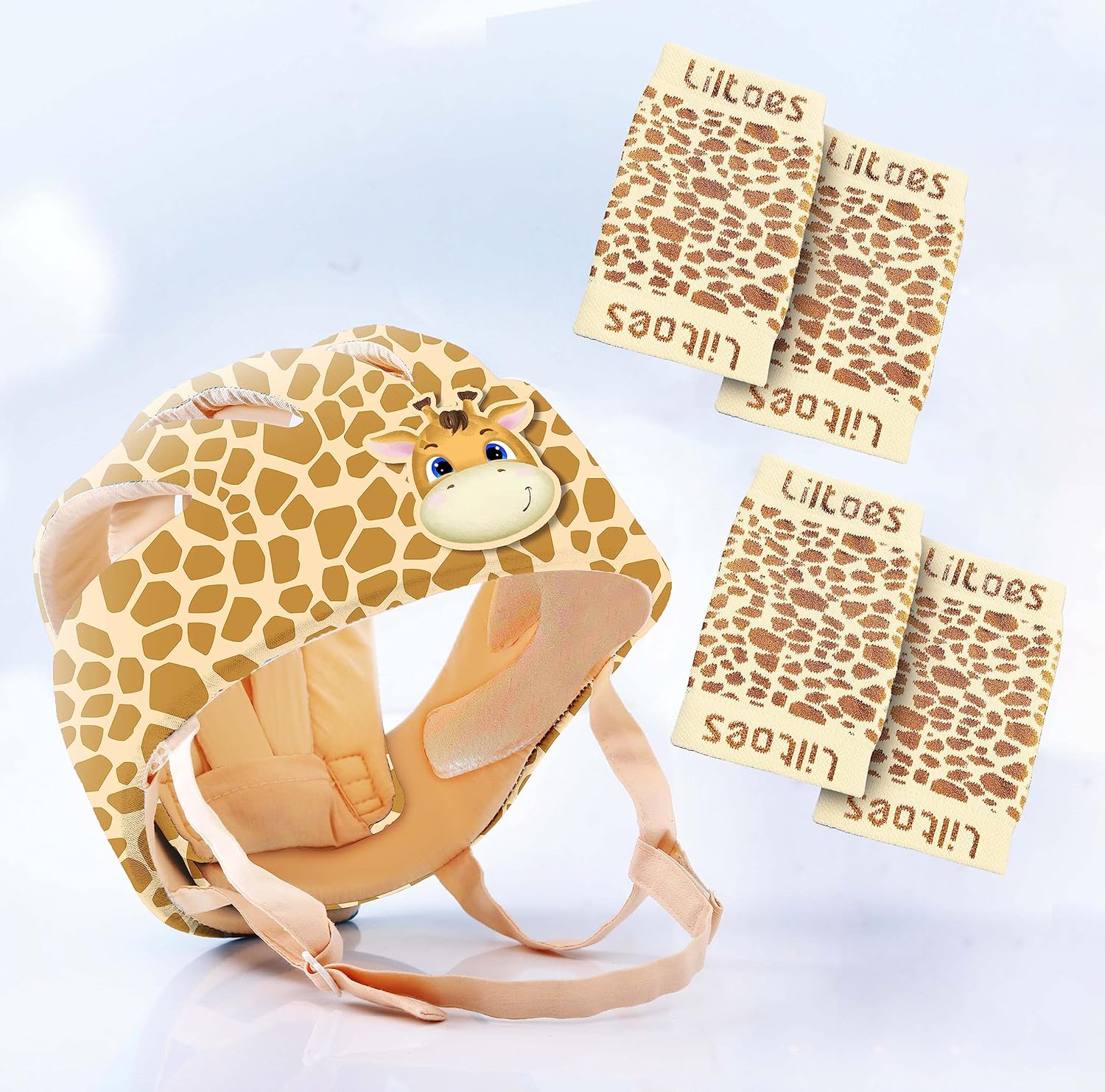 LILTOES Baby Head Protector for Safety of Kids 6M to 3 Years- Baby Safety Helmet with Proper Air Ventilation & Corner Guard Protection + 1 Pair Knee Pad + 1 Pair Elbow Pad (Ladder Girrafe)