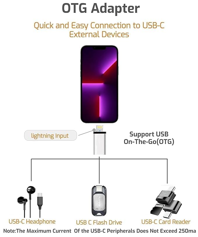 [USB-C to Lightning Adapter]: An ideal solution to charge and sync iOS devices by a USB-C cable, saving the trouble of carrying extra cable around. Directly makes iOS devices compatible with USB-C cable. Enables your i-Pad machine to connect a USB-C cable. Minimum design, no additional drivers or installation required.