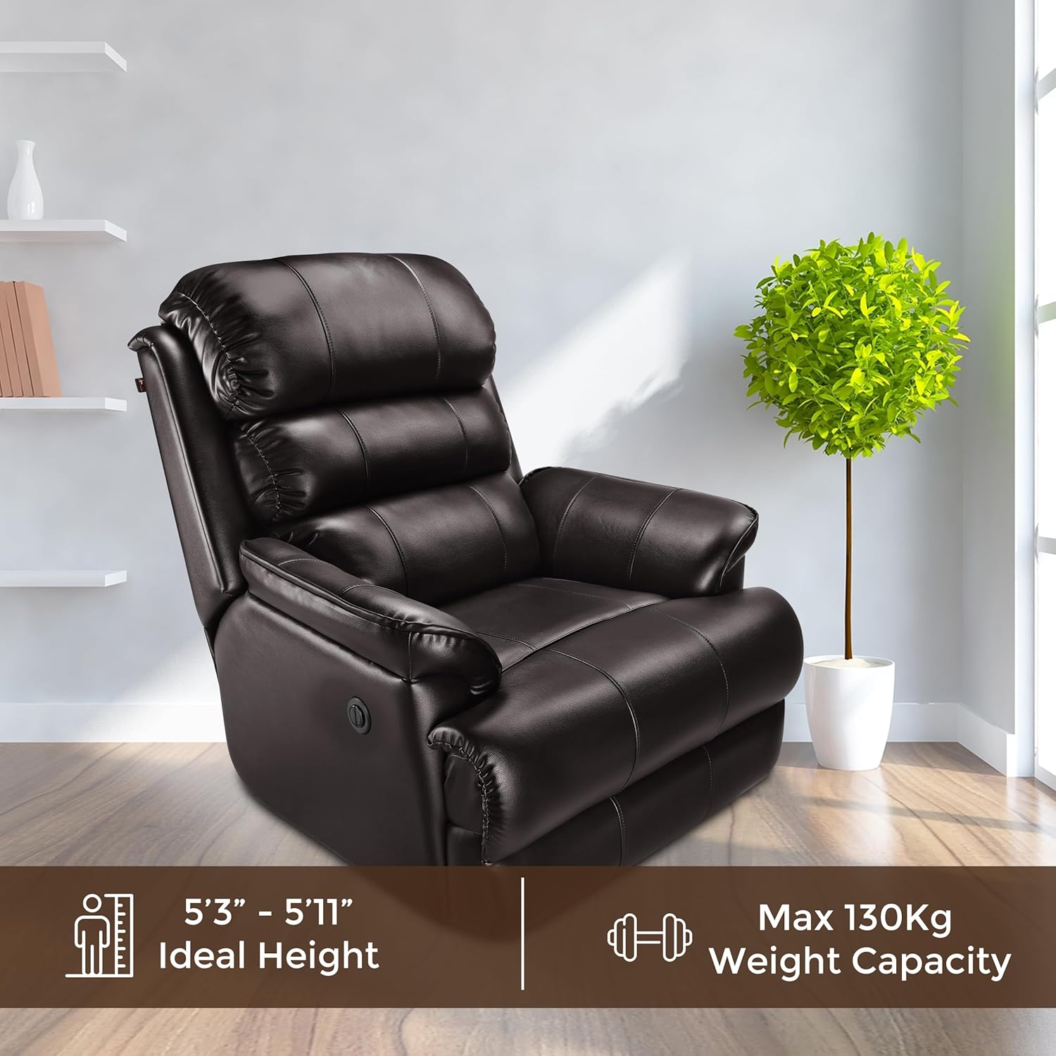 𝗟𝗨𝗫𝗨𝗥𝗜𝗢𝗨𝗦 𝗨𝗣𝗛𝗢𝗟𝗦𝗧𝗘𝗥𝗬: Wrapped in premium, breathable Leatherette, this recliner is as durable as it is stylish. The soft-touch upholstery adds a cozy feel, making it ideal for working professionals, seniors, and expecting mothers, while seamlessly enhancing any home décor. It’s a practical yet stylish addition to any home, ensuring that your loved ones can unwind and rest comfortably whenever they need to.