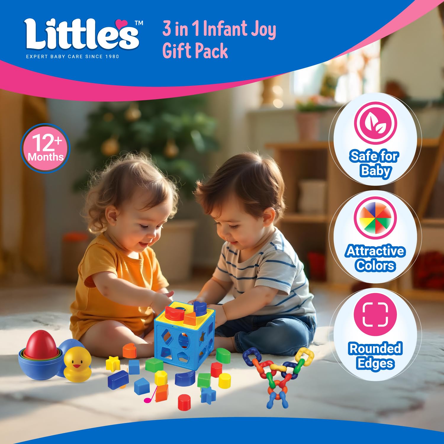 Thoughtfully Curated Gift Set Little’s 3-in-1 Infant Joy Gift Pack is an ideal gift for babies aged 1 Year+, making it perfect for birthdays, baby showers, and festive occasions.