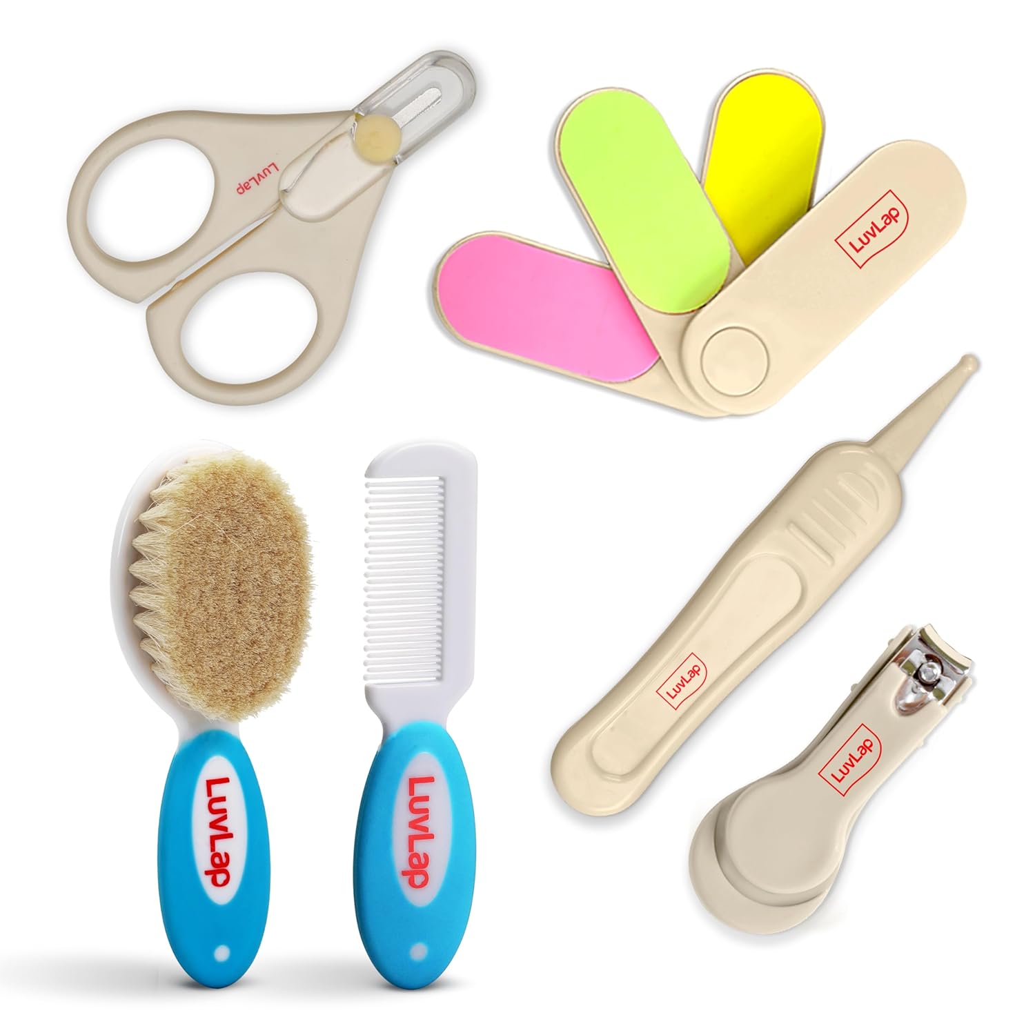 LuvLap Baby Nail & Hair Grooming Set, Contains 4pcs Nail Grooming Kit & Hair Grooming Natural, Baby Comb & Brush Set with Soft bristles, Baby Nail Cutter, New Born Grooming Kit, 0m+