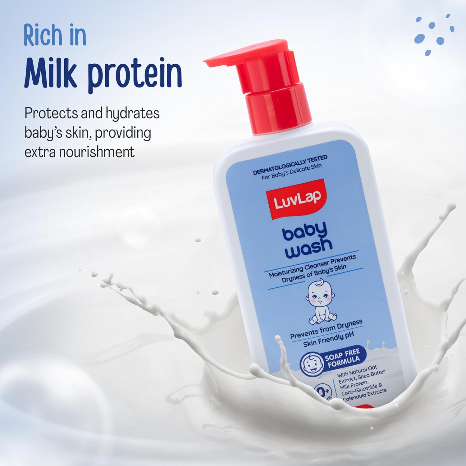 Rich in Milk Protein: Protects & Hydrates baby’s skin, providing extra nourishment.