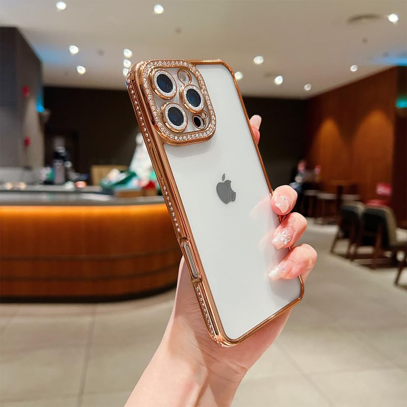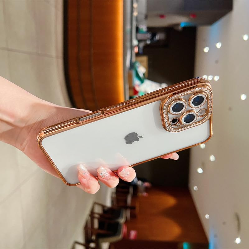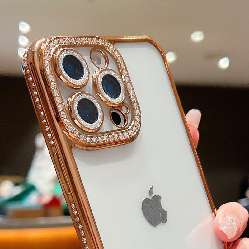 LuxuryKase Thermoplastic Polyurethane Sparkling Bling Designer Case for iPhone 16 Pro | Diamond Camera Protection | Premium & Elegant Design |Slim Fit & Durable – Gold