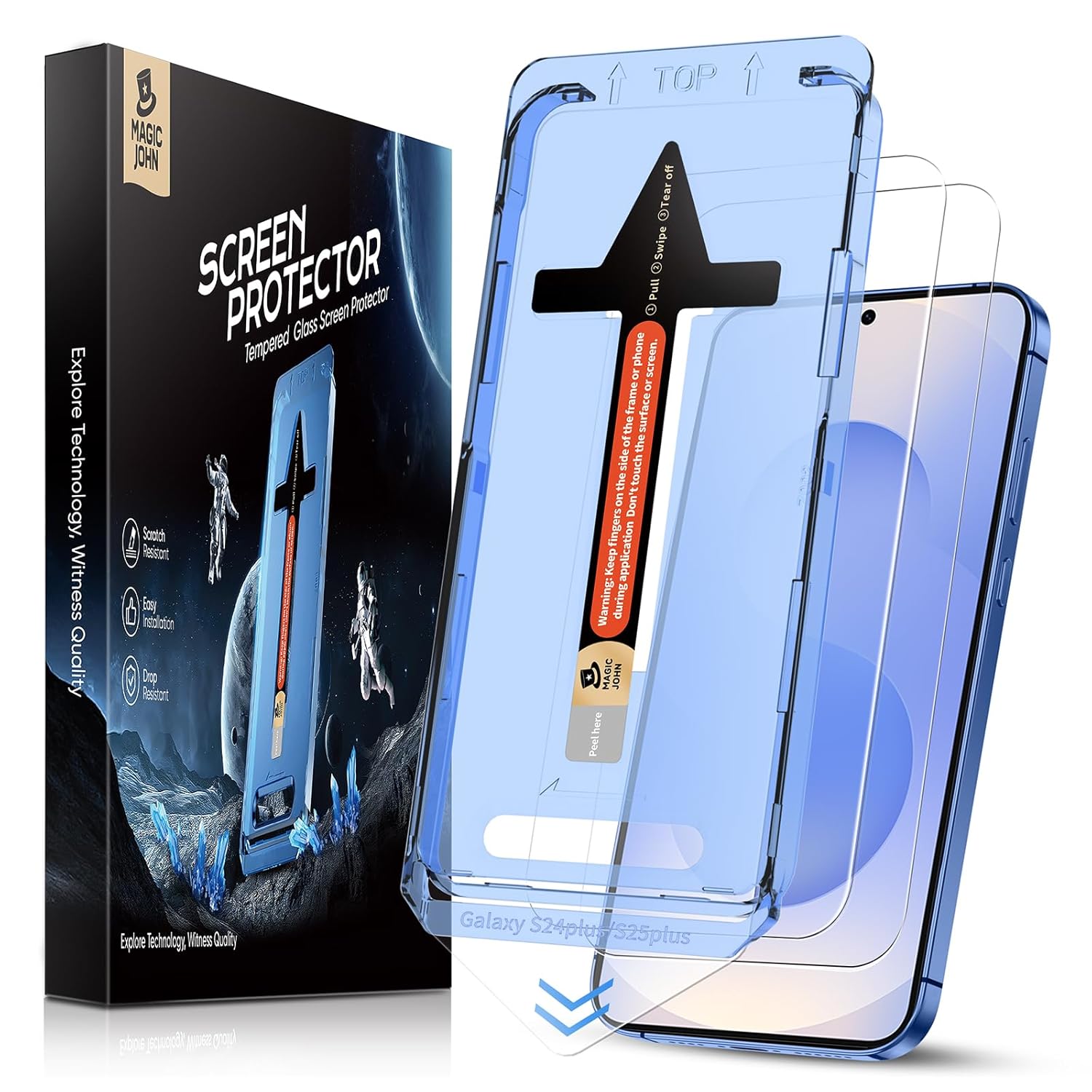 [Anti-Fingerprint] MAGIC JOHN tempered glass screen protector for Samsung Galaxy S24 Plus/S25 Plus is finished with oleophobic coating to against oil residue from fingerprints from long-term use.